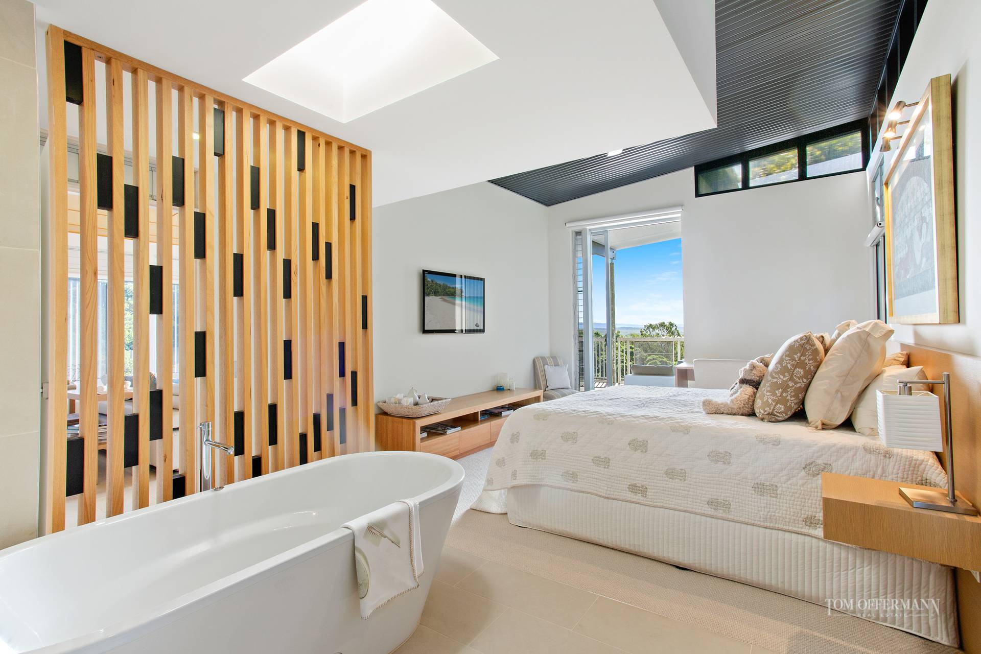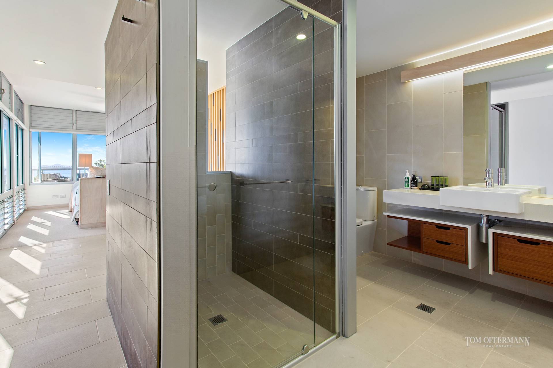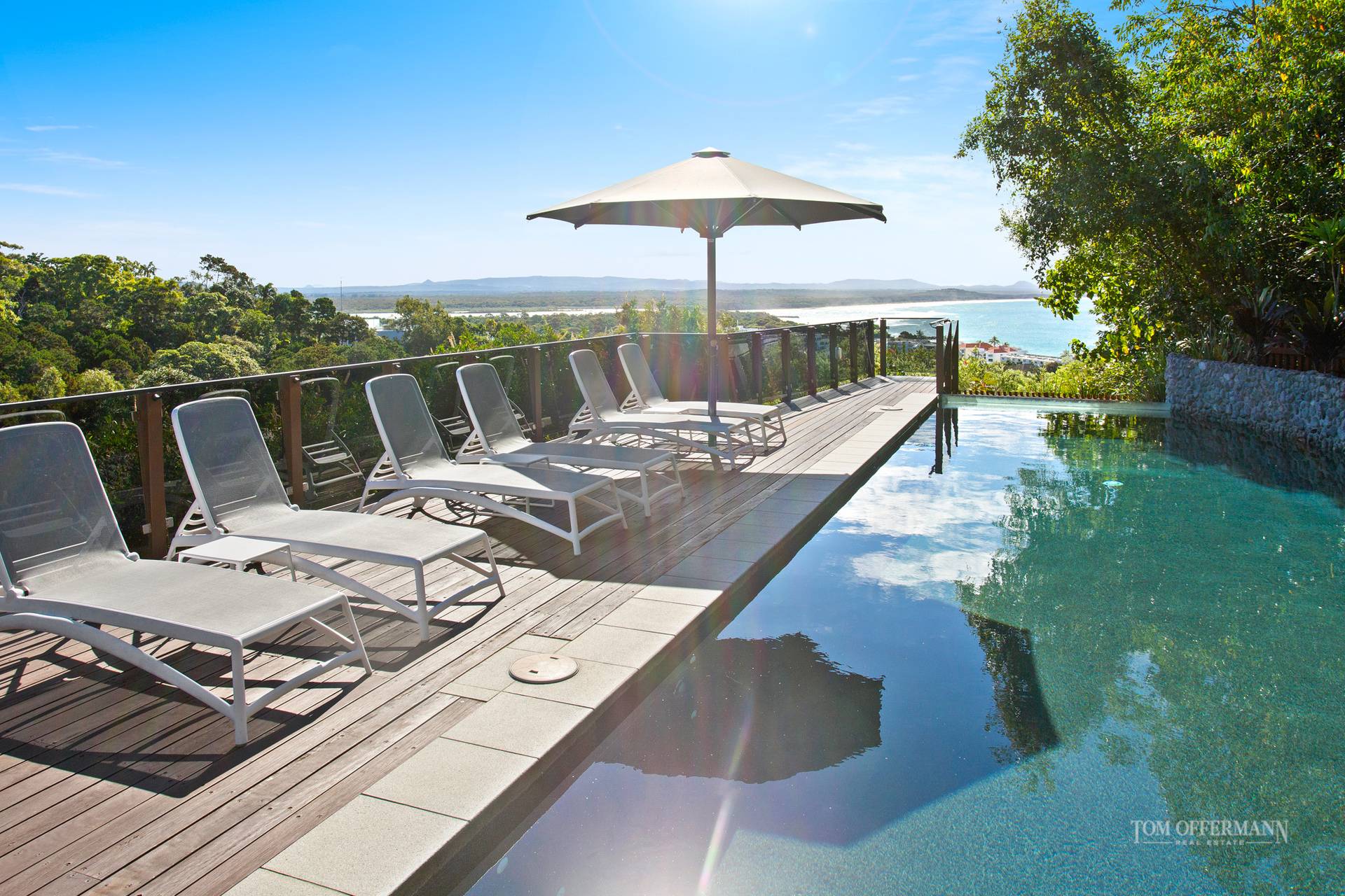 Imagine having an Osprey's view, sweeping north across Hastings Street, the spectacular azure waters of Laguna Bay, beyond to the Coloured Sands and the verdant hinterland from one of two super-sized balconies. They seemingly perch unobtrusively in native forest surrounds with trees such as Bunya pines, Quandongs and deciduous Figs.