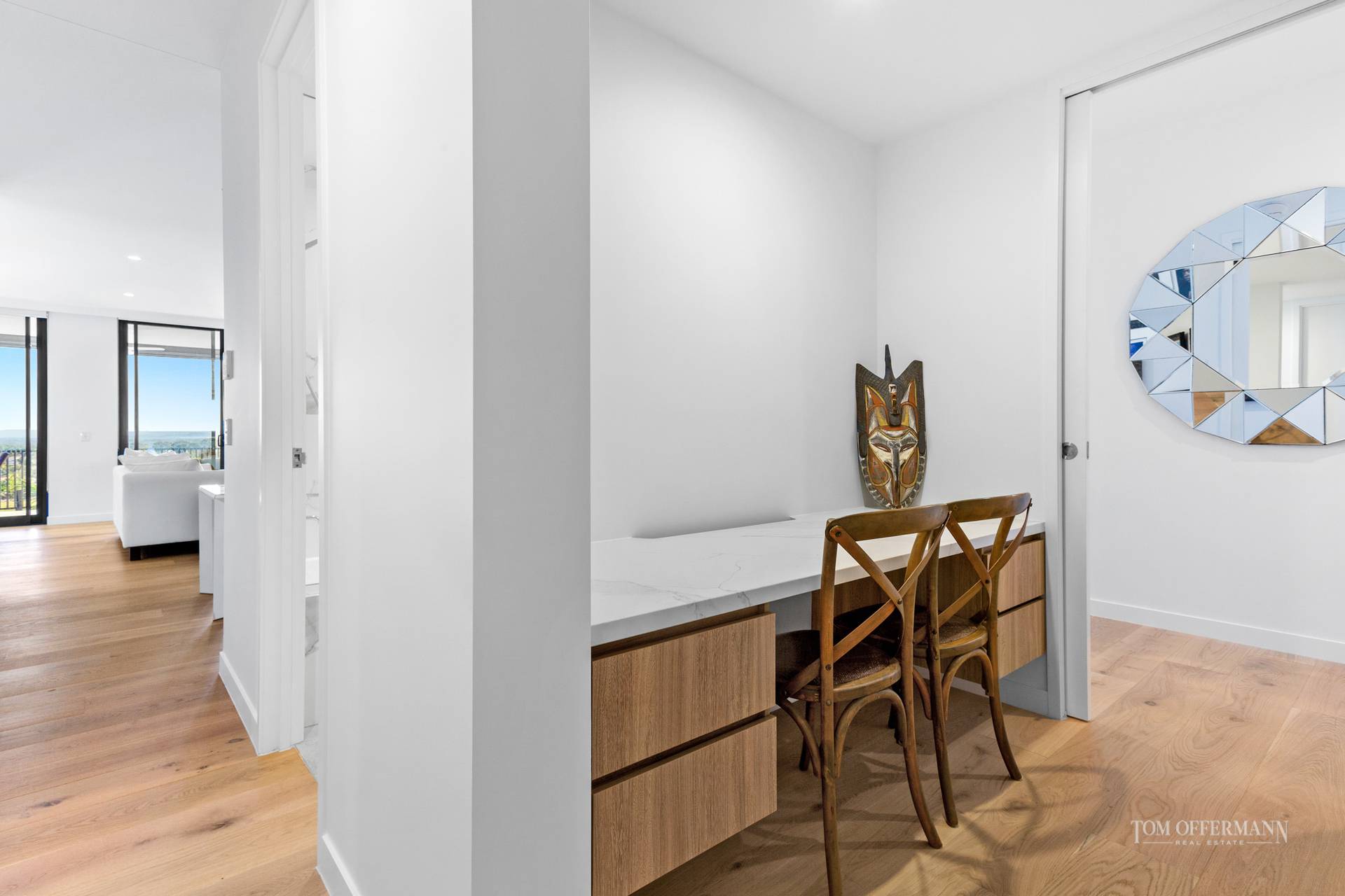 A subtle contemporary earthiness establishes its roots in the pale oak flooring which travels from the front door through the hallway, past a study to the expansive open plan living/dining area. It is obviously designed for sophisticated entertaining. In addition, the smooth indoor/outdoor connectivity to the private expansive low-walled sun-drenched terraces on three sides, suggests living the good life continues alfresco from sunrise to sunset and beyond.