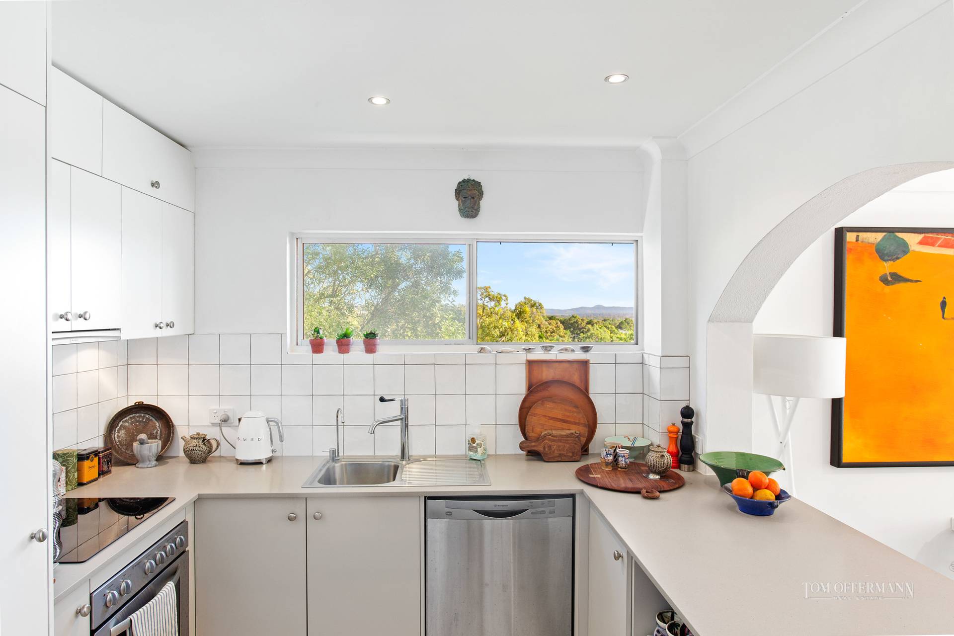 The U-shaped kitchen and breakfast bar with exquisite Tuscan floor tiles, stone bench tops, 2-pac cabinetry and all the necessities for entertaining, has a leafy outlook.