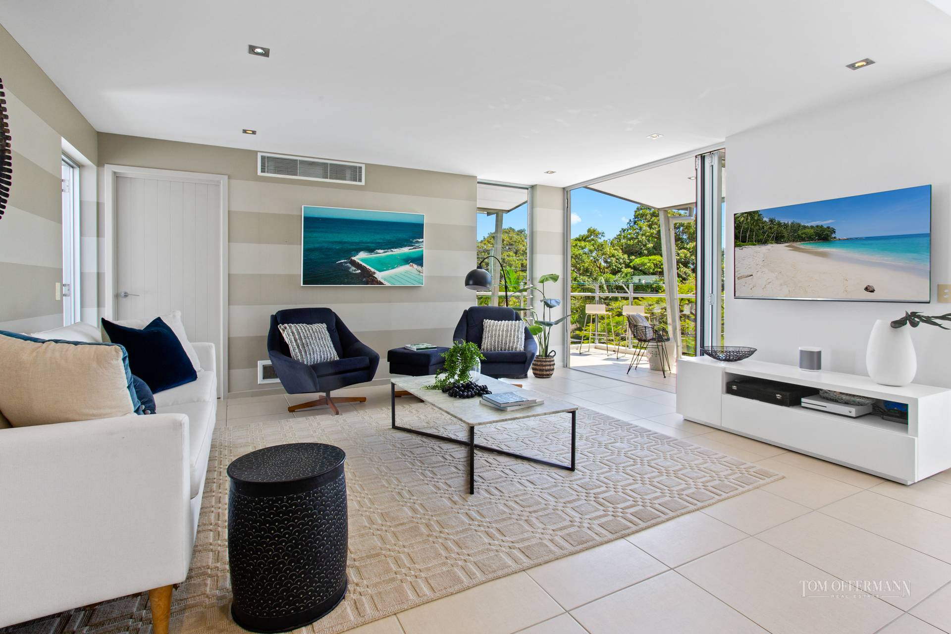 Feel the sea-salt breeze and capture unparalleled unobstructed views of impossibly blue Laguna Bay, along Noosa Main Beach and beyond to the Coloured Sands and Mt Cooroy, from the most enviable and prized location in Little Cove. Let us not forget too, it is a few minutes to the world famous, forever verdant Noosa National Park, less than 100m to the beach pathway of Hastings Street, and Little Cove Beach is almost on the doorstep.