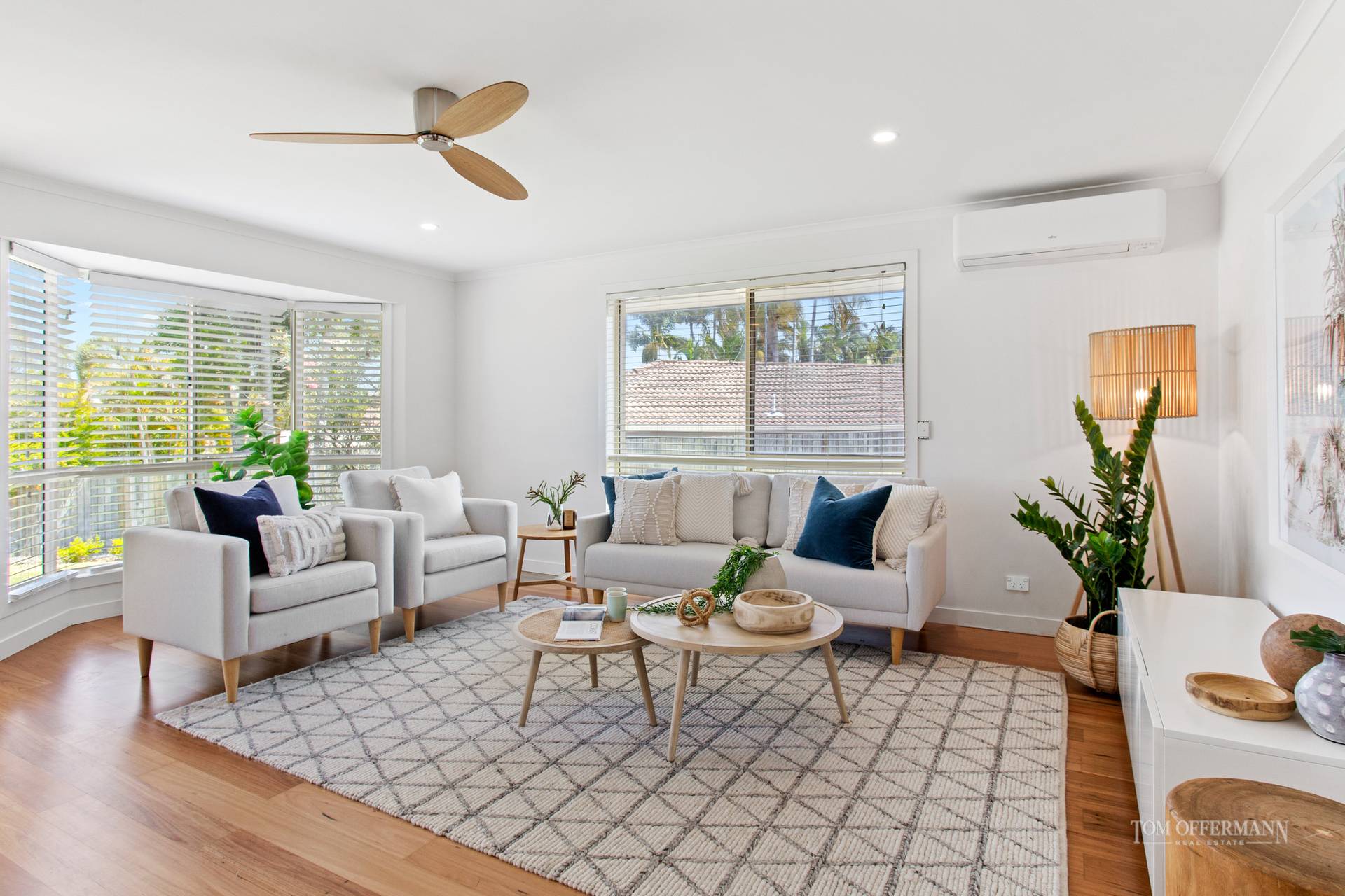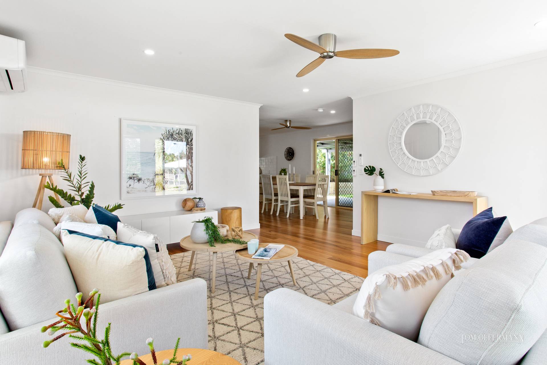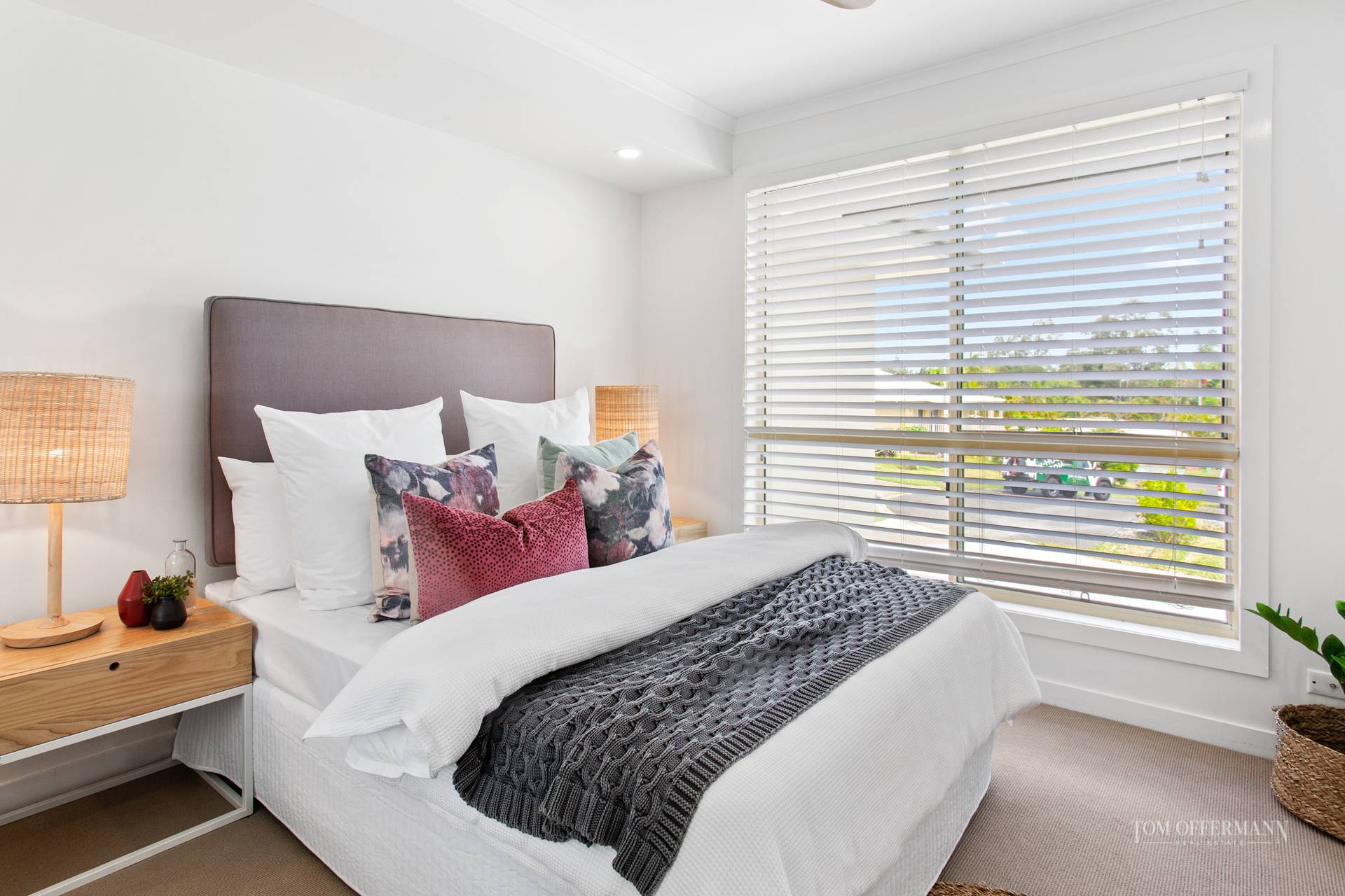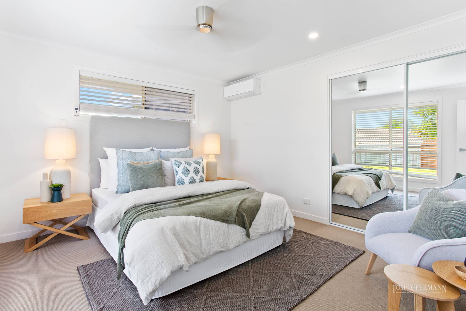 After a sun-kissed day outside, enjoy the air conditioned comforts of the light & bright renovated interiors, with crisp white walls and floating timber floors. Stone bench tops through the kitchen and a modern stone tile finish in the bathroom give the home a soft and relaxing setting for the evening.
