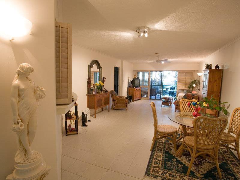 Thinking of retirement, or on your own? Then this apartment may be for you. Situated on the high rise overlooking Noosa River and Noosa Sound with a northern aspect, this apartment has pleasant filtered views through the tall gum trees to Laguna Bay and the North Shore. One often enjoys the company of a koala snuggled into the branches viewed from a large covered entertainment deck.