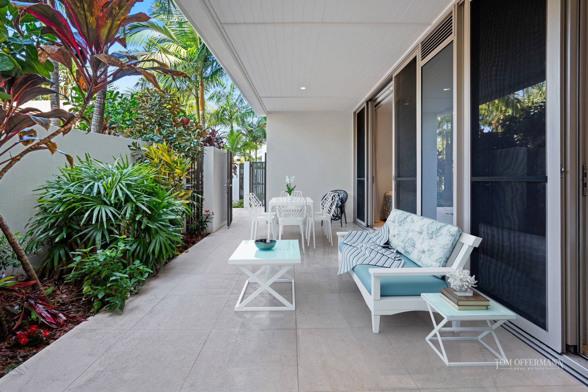 To the right off the lobby is a family-size bathroom and two large bedrooms with sliders, open to a covered courtyard. It's not just a very private alternative space for alfresco entertaining but there's another piece de resistance. Open your gate and unrivalled facilities such as a heated 25m lagoon pool surrounded by beautifully manicured gardens, a gazebo, pavilion with outdoor kitchen, indoor plunge pool, change facilities and a gym, are steps away.