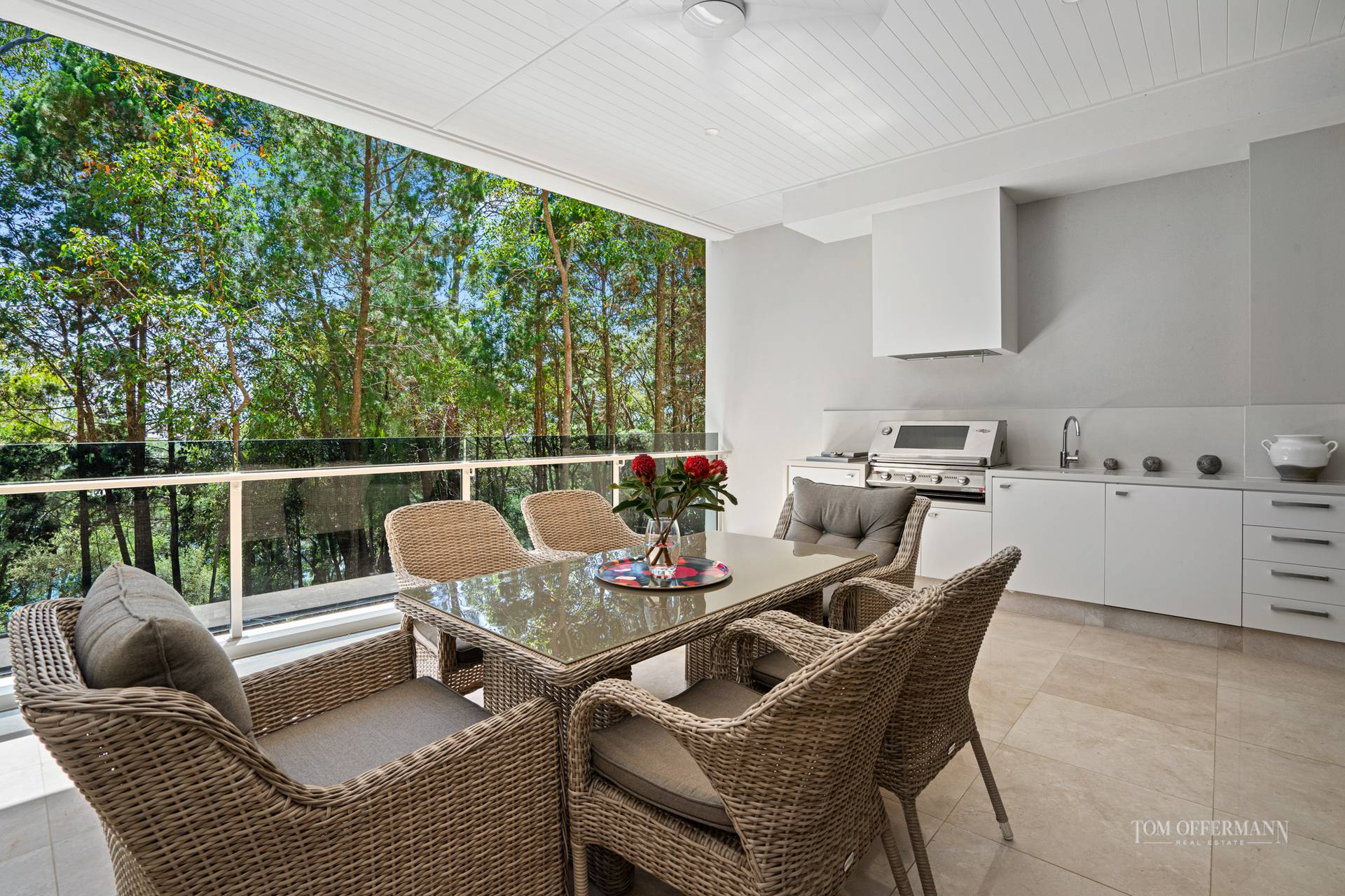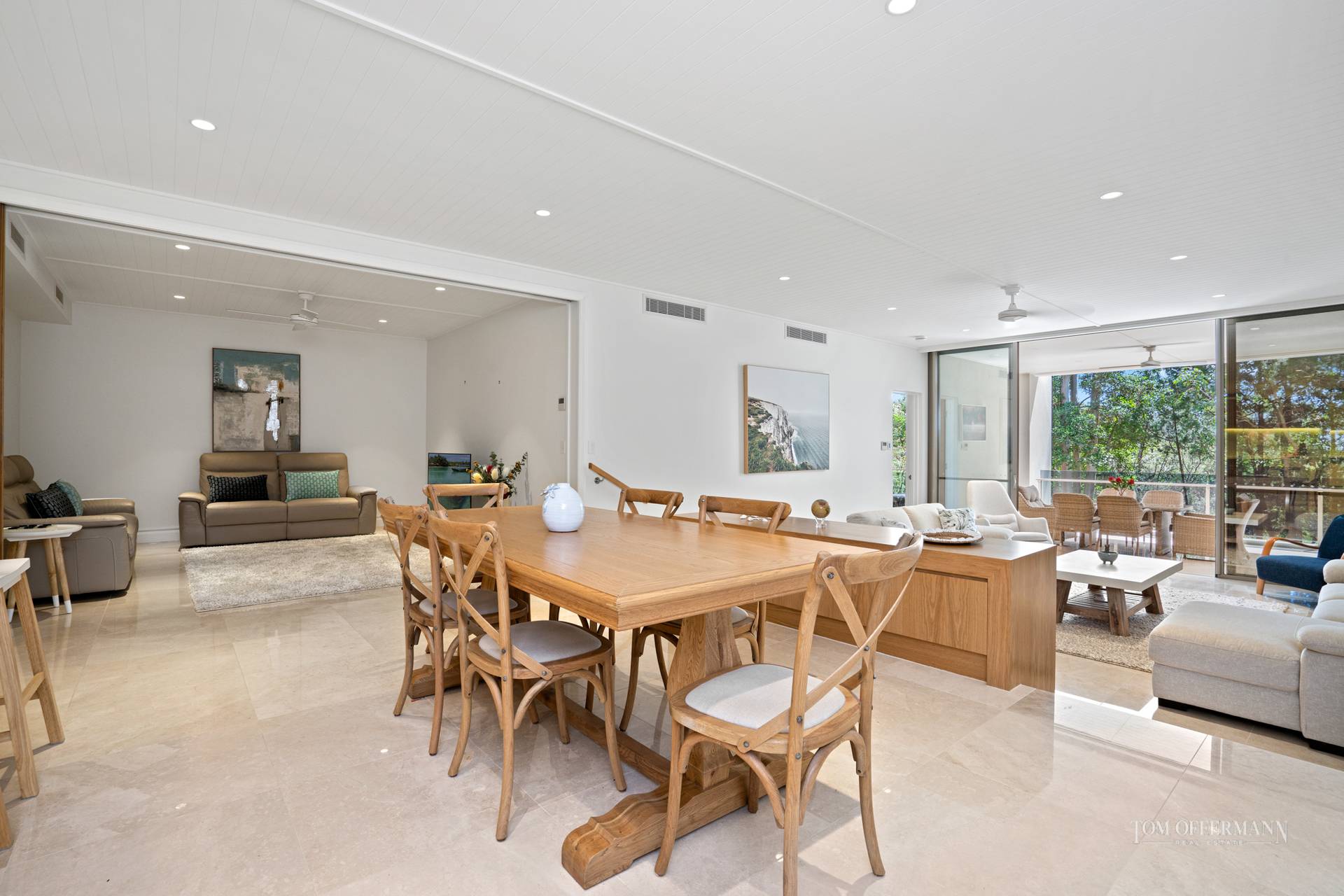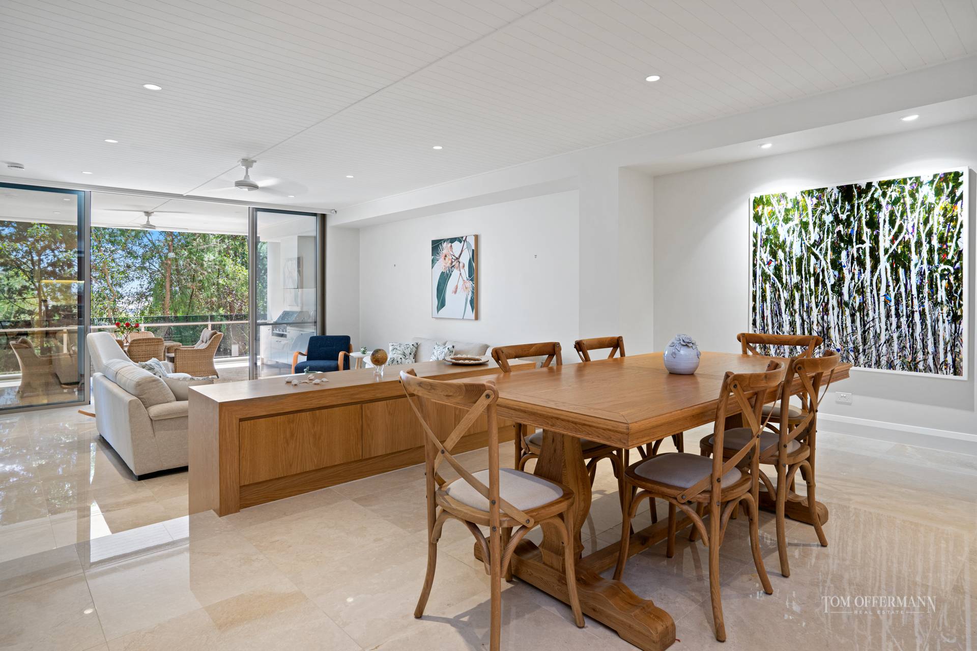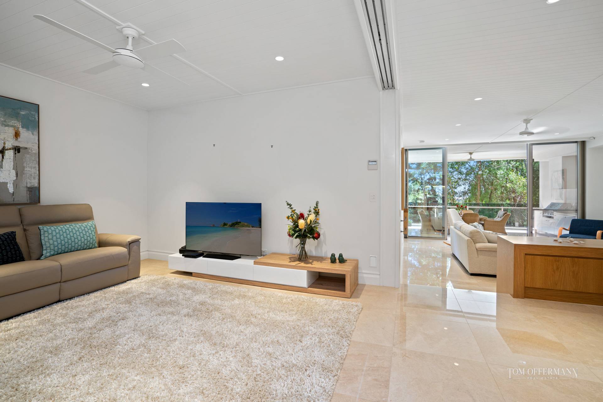 From the elevated prodigious alfresco living space on the ground floor, nature rules imposing its quiet strengths, with filtered views through Paperbark trees in the reserve abutting a waterway on Noosa Sound. There's an emphasis on privacy; the only intrusion is birdsong.