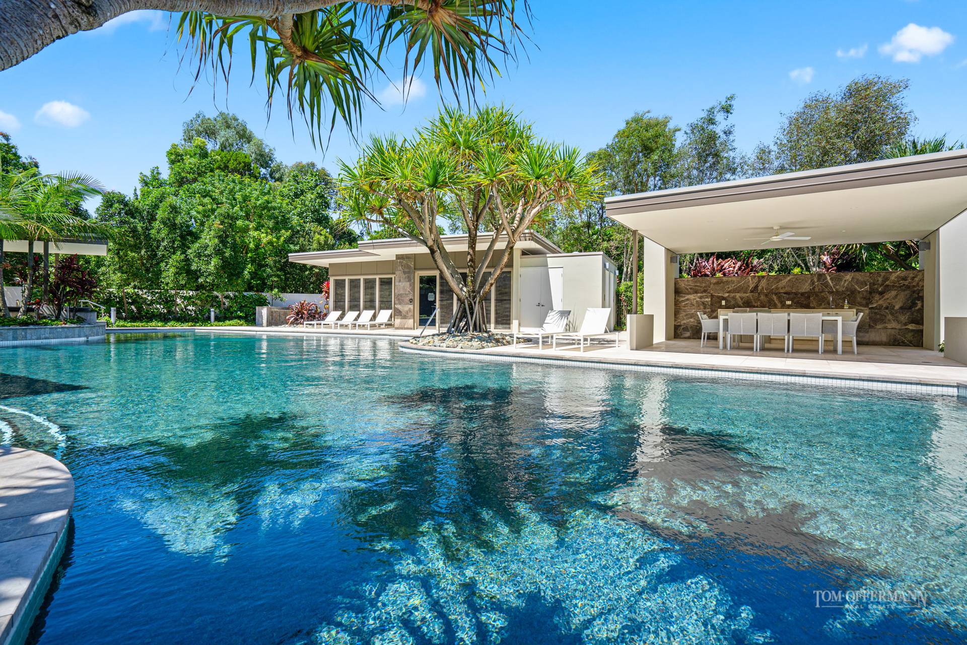 Heated 25m lagoon pool, gazebo, pavilion with outdoor kitchen