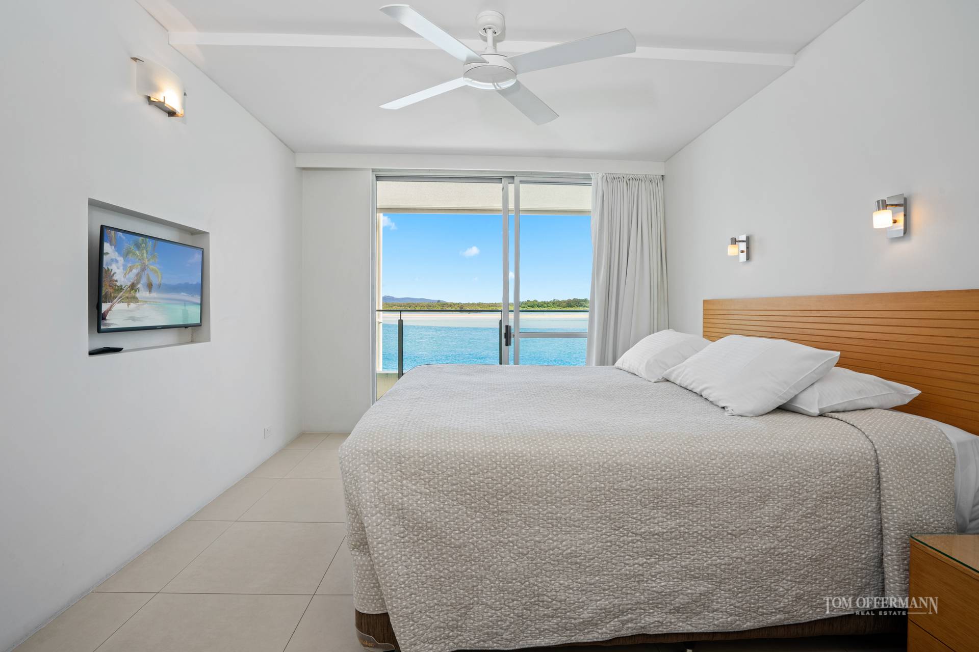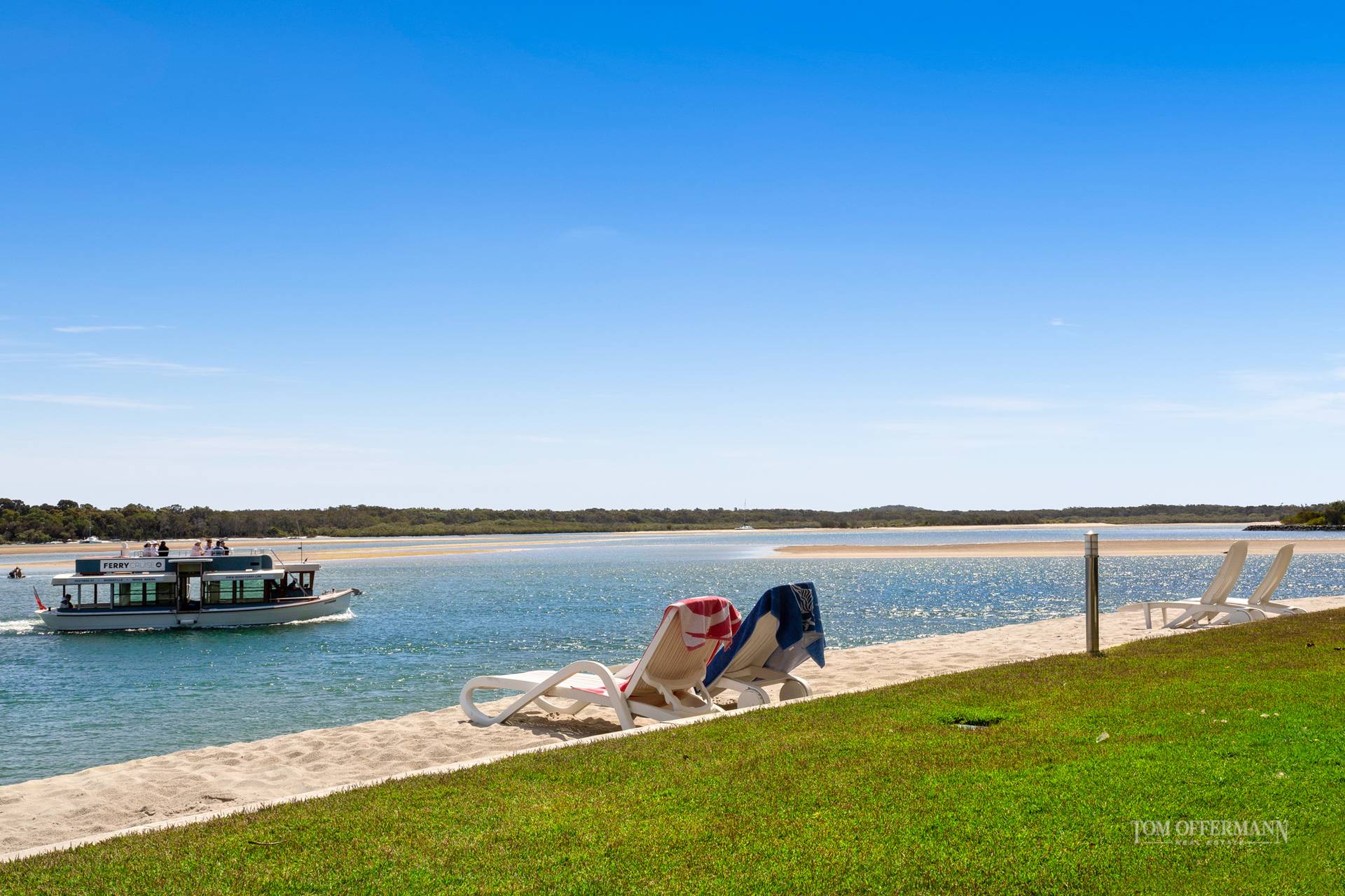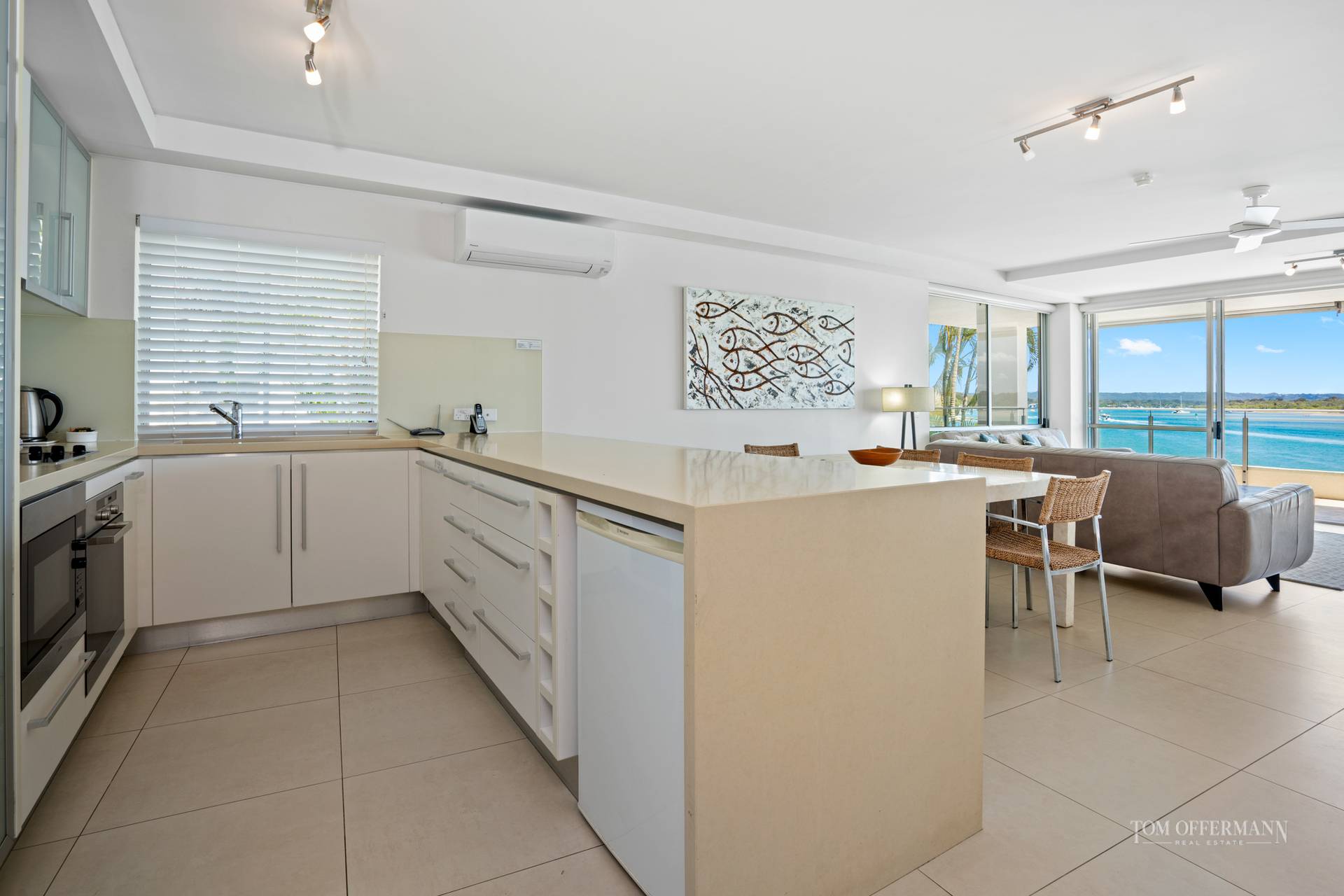 Picture an impressive apartment with an invisible line between indoors and out, seemingly suspended over a white-sand beach, jetty and riverfront with bedazzling seascapes across the Noosa River to the North Shore and beyond to the Coloured Sands. Eyes south along the park-fringed Noosaville foreshore which stretches to the Everglades. Beyond is Mount Cooroy. Gull's eye views of the azure waterways around Noosa Heads, river mouth and national parks are on the right.