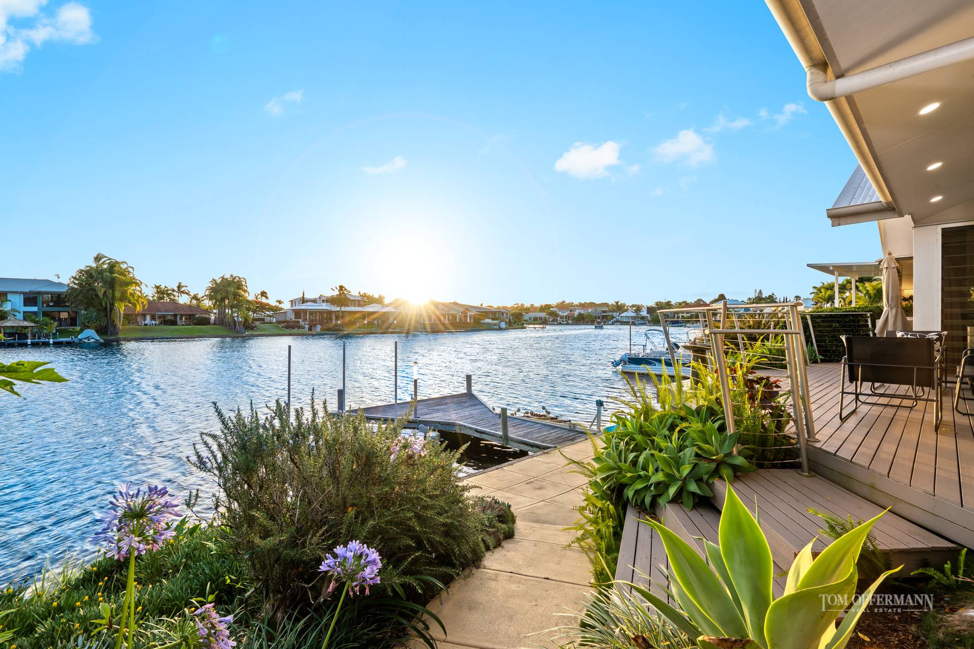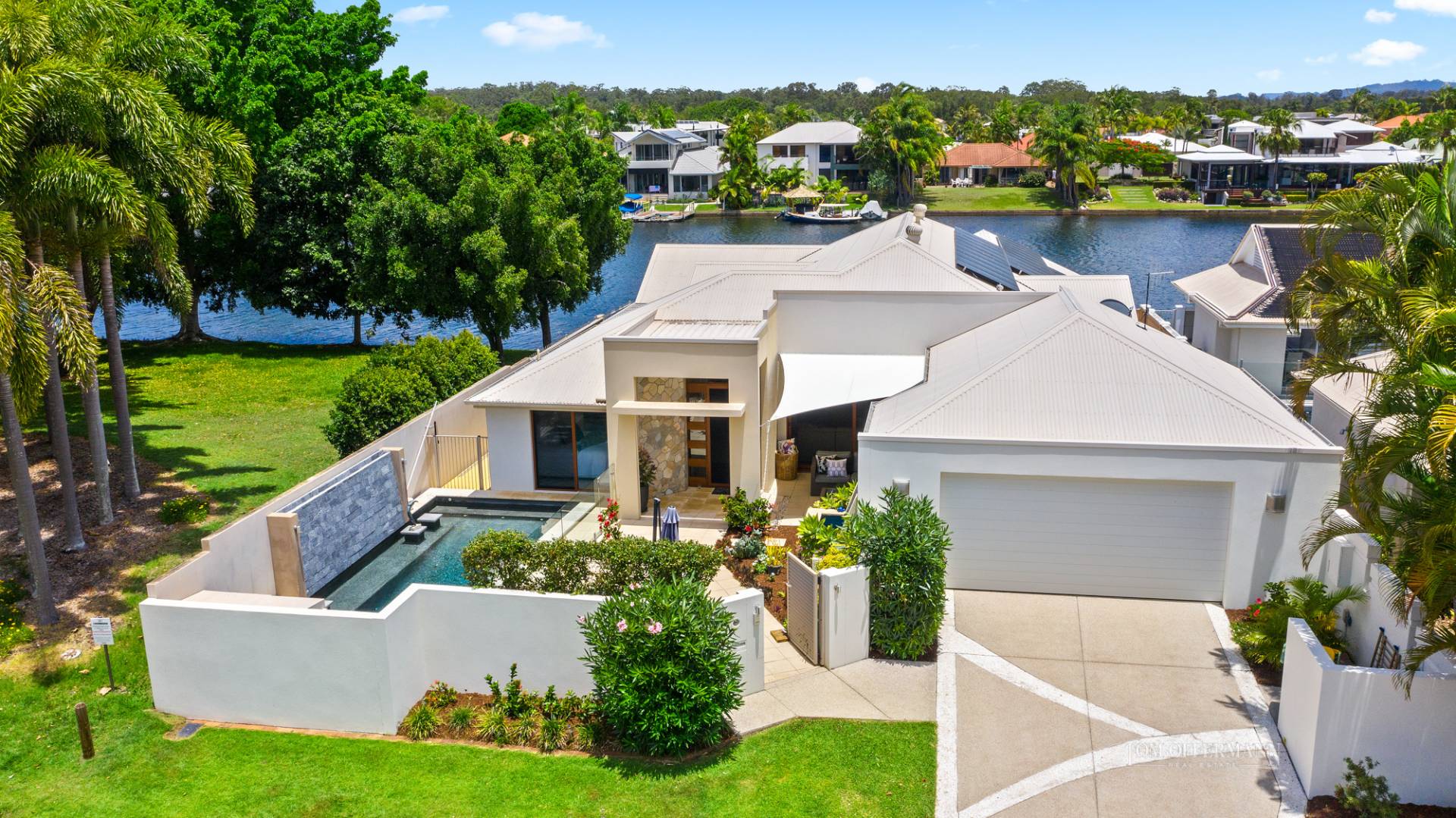 Living the good life in a postcard position of Noosa Waters is guaranteed when the neighbour is Seahorse Park, your garden has a wide waterfrontage with a jetty, and the address is a tranquil cul-de-sac. Naturally, the pool is north-facing, views stretch across two waterways, and the residents-only lock and weir system to access the Noosa River is nearby.