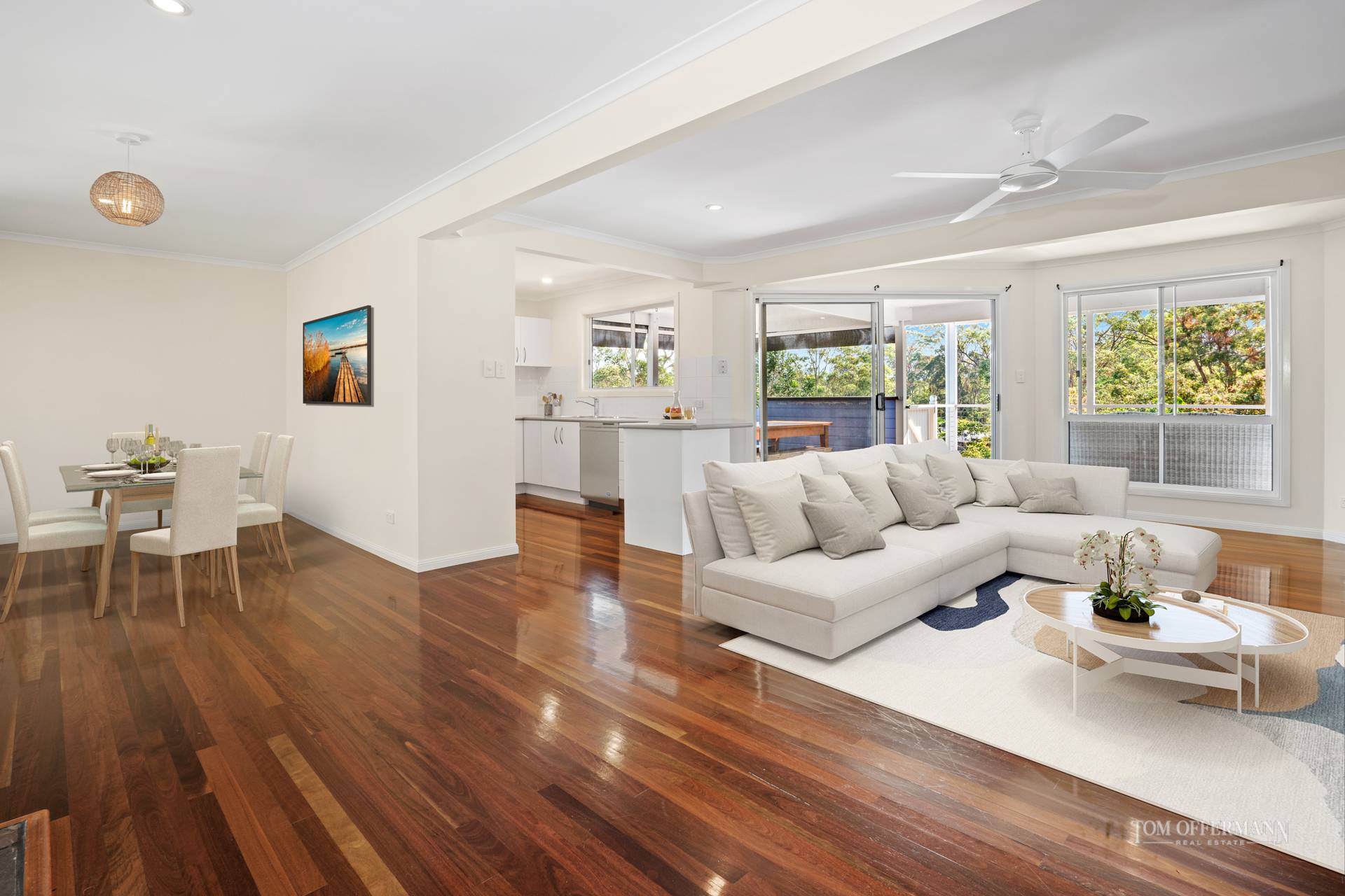 The street appeal is delightful. Open the front door and step in to the open plan living, dining and kitchen and out to the large undercover alfresco dining deck overlooking the garden and tree tops across. Steps down to the garden. A wood fire was installed in 2013 and warms the entire living space and bedrooms on the occasional cold winter day.