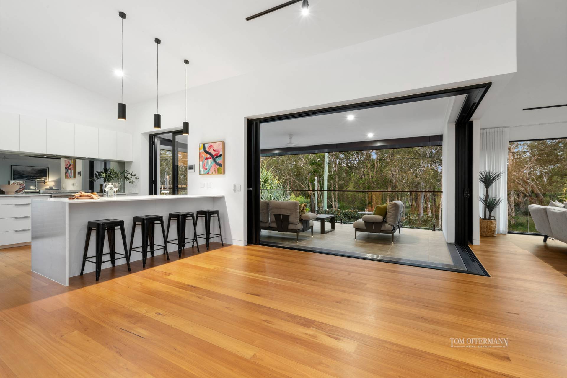 Nestled in a coveted playground of breathtaking beauty, this stunning architect-designed home boasts a privileged address mere fishing rod lengths away from the tranquil crystal-clear Lake Weyba waterways. The allure of having Noosa National Park with abundant birdlife and kangaroos at your back gate is simply unparalleled.