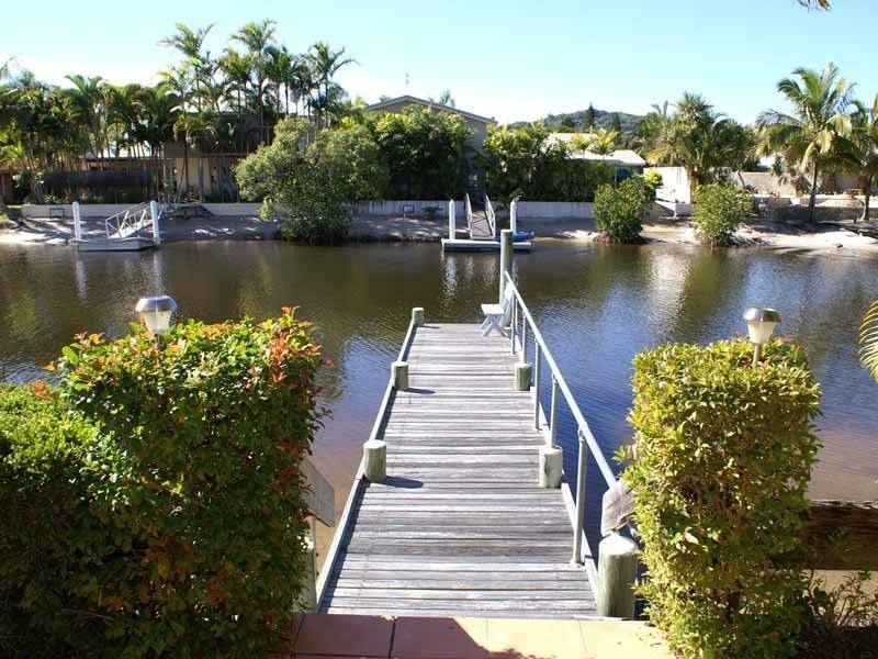The two-level, fully-furnished, partly renovated townhouse, at Number 1 Peza Place, Peza Court, which is popular for holiday letting and is suitable for permanent living, opens up on the waterfront to a sandy beach and private jetty, with deep water mooring.