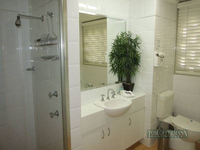 Open plan living and striking furnishings provide for easy relaxation in this private position. Plantation style louvers allow light to flood the bright apartment.
