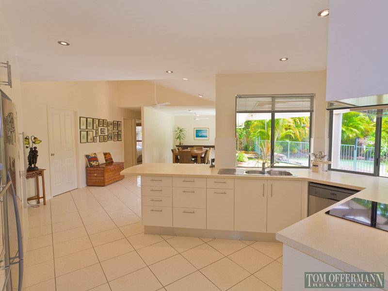 Situated in sought after Noosa Waters this lovely home offers cool white interior finishes, high feature ceilings and the many windows and doors create light and airy living spaces.