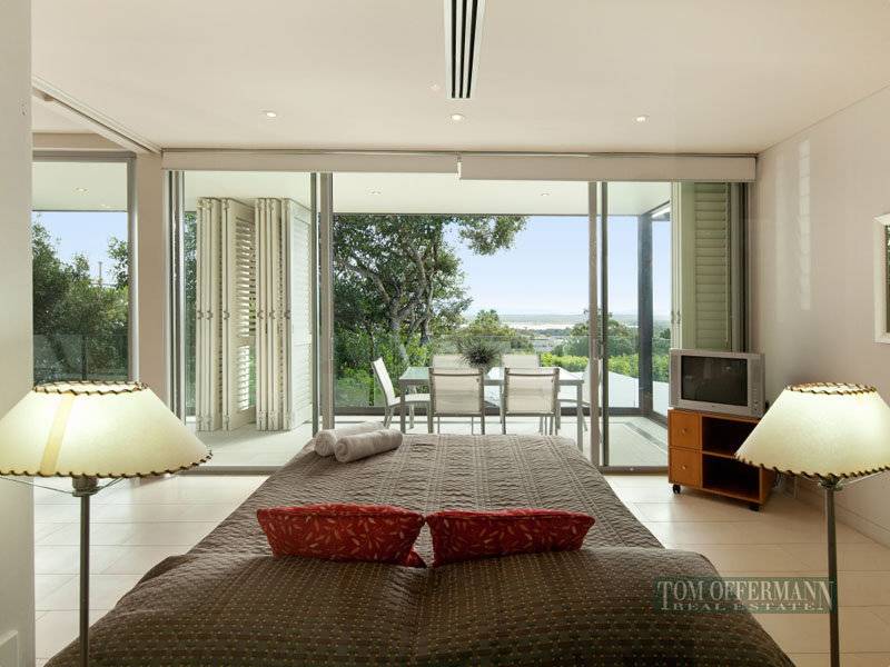 The lounge and dining areas open through glass sliding doors to the balcony, where white shutter doors fold back to reveal gorgeous views. Views that are also captured from the main bedroom that opens to the same expansive balcony.