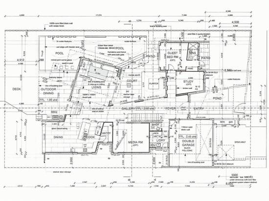 The water theme is predominant both indoors and out and is accentuated through creative and innovative design features. There are seamless floor-to-ceiling glass doors and windows, vast bands of louvres, glass balustrades and frameless pool fencing. There is even a spectacular horizontal glass wall panel that turns the shimmering waters of the lap pool into a fluid work of art on the living room wall!
