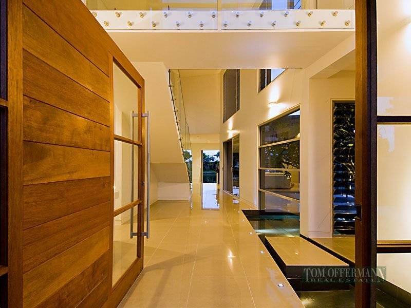 The instant the wooden pivot door sweeps open on this home, the senses come alive and you realize you are experiencing the future of Noosa design genius at work. Firstly the eye soars out to the tranquil waters of the Noosa canals, and then sweeps to the lofty heights of the spectacular entrance and up the dramatic glass staircase. Serenity fills you as soothing watercourses flow underfoot. Sparkling waters of the swimming pool hug the perimeter and create a secluded tropical garden courtyard. Nature's elements, architectural design genius plus quality finishes and fittings, combine in perfect harmony to create one of Noosa's finest homes.
