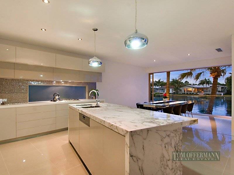 This exquisitely designed home boasts four spacious bedrooms all with superb views and elegant ensuite bathrooms. The master suite is a stunning oasis. Its sunny terrace is suspended overlooking the waterways. The dressing room and walk-in wardrobe area is immense and truly "Hollywood" in its dimensions. The resort-style atmosphere of the full ensuite bathroom will have you whiling away the hours from your tub-with-a-view set in tranquil, luxurious and private surroundings.