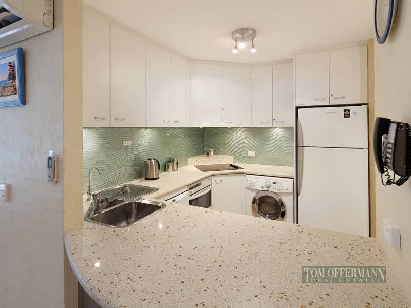 This stylish apartment has an understated, sophisticated finish from the rippled glass kitchen splash backs and Caesarstone benches to the soft leather lounges and beautiful decor, providing a refreshingly relaxed and easy ambience. Recline for a while on the covered, north facing balcony or pamper yourself in the complex's roof top spa or heated swimming pool.