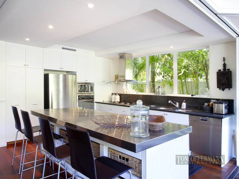The living areas downstairs completely open onto a full width deck just metres from the waters edge. This is a grand property in every sense with open plan formal and casual areas for lounge, living and dining. The kitchen is superbly designed and positioned to effortlessly service the entire downstairs living areas. The large entertaining deck comfortably accommodates an oversized dining table where you will spend countless hours dining and relaxing with friends and family.