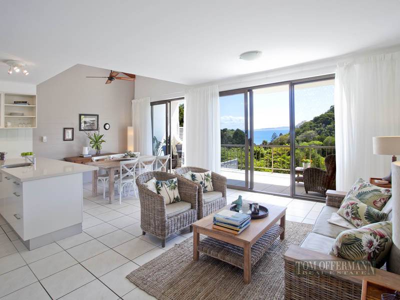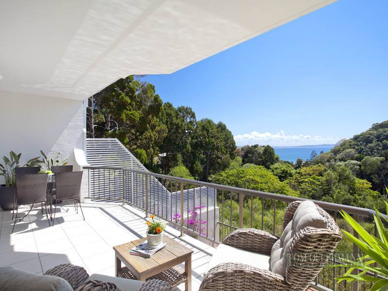 Enjoy sweeping views across Laguna Bay towards the Noosa North Shore from every level of this three bedroom three bathroom duplex. Right next to the National Park, the leafy, tranquil, private location is only a few minutes' walk down Noosa Hill to Hastings Street and Main Beach.
