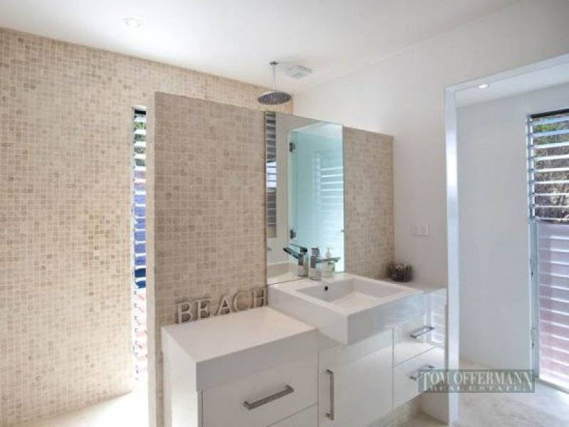 The lower level of the home is practical in execution with an open door shower room sporting a bank of three rainwater heads and a lock up storage for surfboards and fishing gear. Wall free domains step to a huge covered deck and timber night lit steps guide you to a private track straight on to the beach.