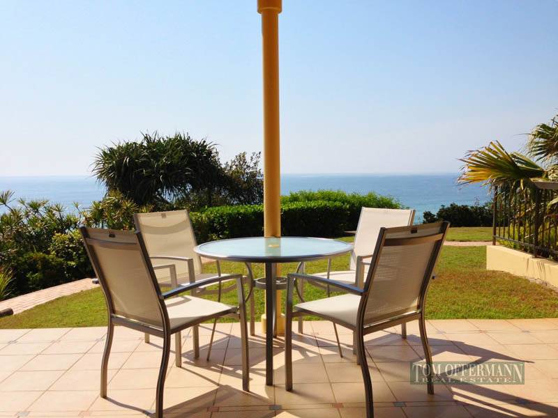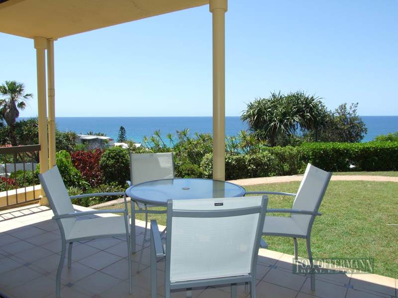This spacious 2 bedroom garden unit boasts magnificent ocean views and offers direct access to the wide sandy beaches of Sunshine Beach, capturing the essence of beachside relaxation.