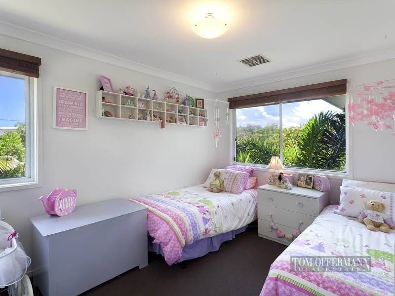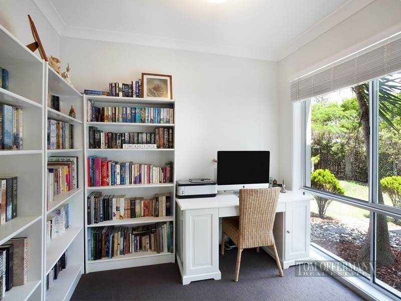 The second living area or media room is wired for entertainment, and there's also a dedicated office plus a separate study nook on the ground floor. Upstairs houses four double bedrooms with ocean glimpses and two large bathrooms.
