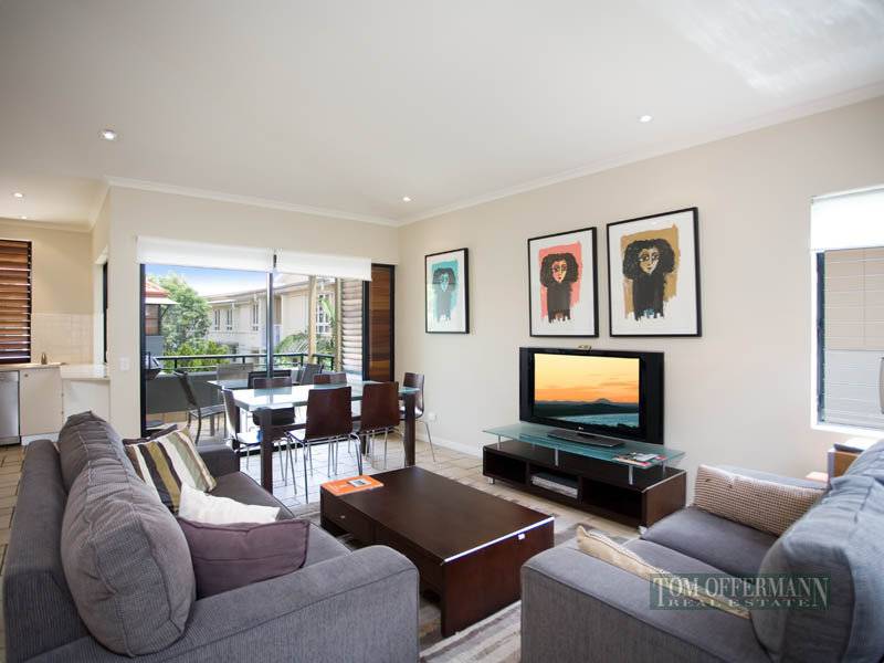 Situated on the top floor and appreciating views from the alfresco entertaining area over the landscaped podium is this spacious self contained unit which features two bedrooms, two bathrooms, modern kitchen with the full facilities and a laundry. Neutral décor, quality appliances furnish the unit and a great use of windows provides an abundance of light all year round. Only foot steps away are the sands of the ever inviting Noosa Main Beach. Though a gentle stroll puts you on the banks of the river or at the beginning of a scenic walk through the National Park. Reverse cycle air conditioning comforts guests all year round. The resort features heated pool and spa, barbeque, undercover security parking, direct dial phones with data port and just a great place to stop and unwind. Solid returns support the unit and what an opportunity to own a great piece of Noosa Real Estate.