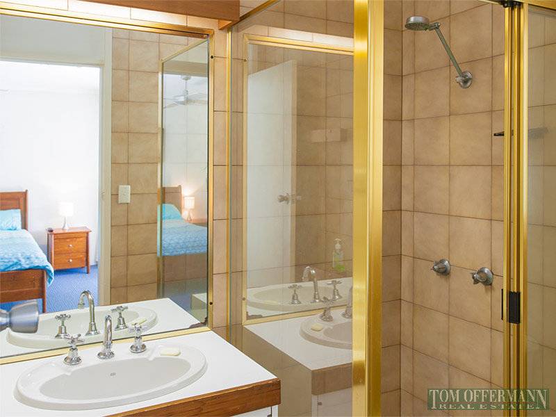 The sleeping zone upstairs accommodates a spacious master bedroom with en-suite and walk-in robe, two twin bedrooms with built-in robes and bathroom. Both levels are serviced by new reverse cycle ducted air-conditioning and many big windows throughout bring in lots of natural light.