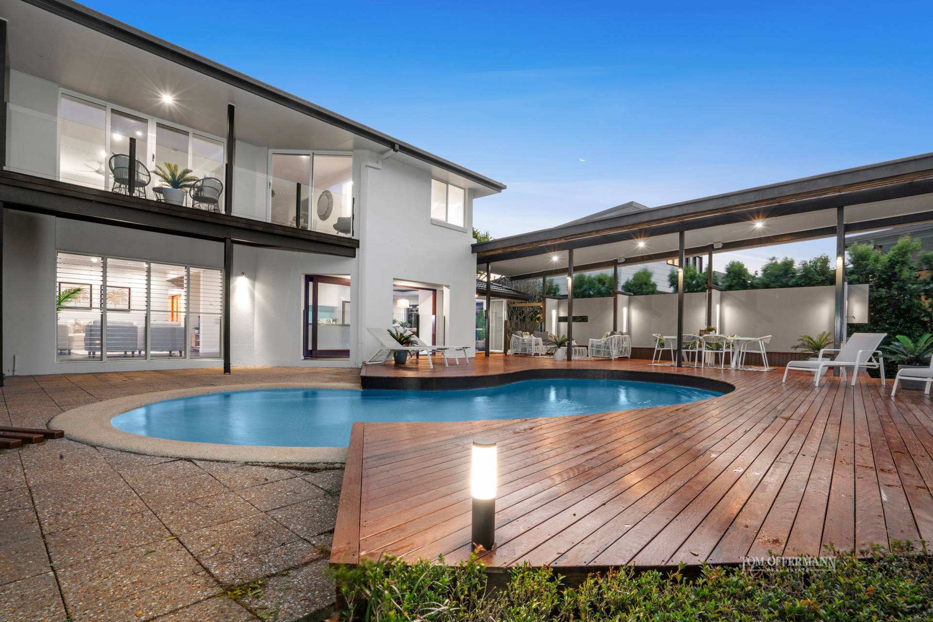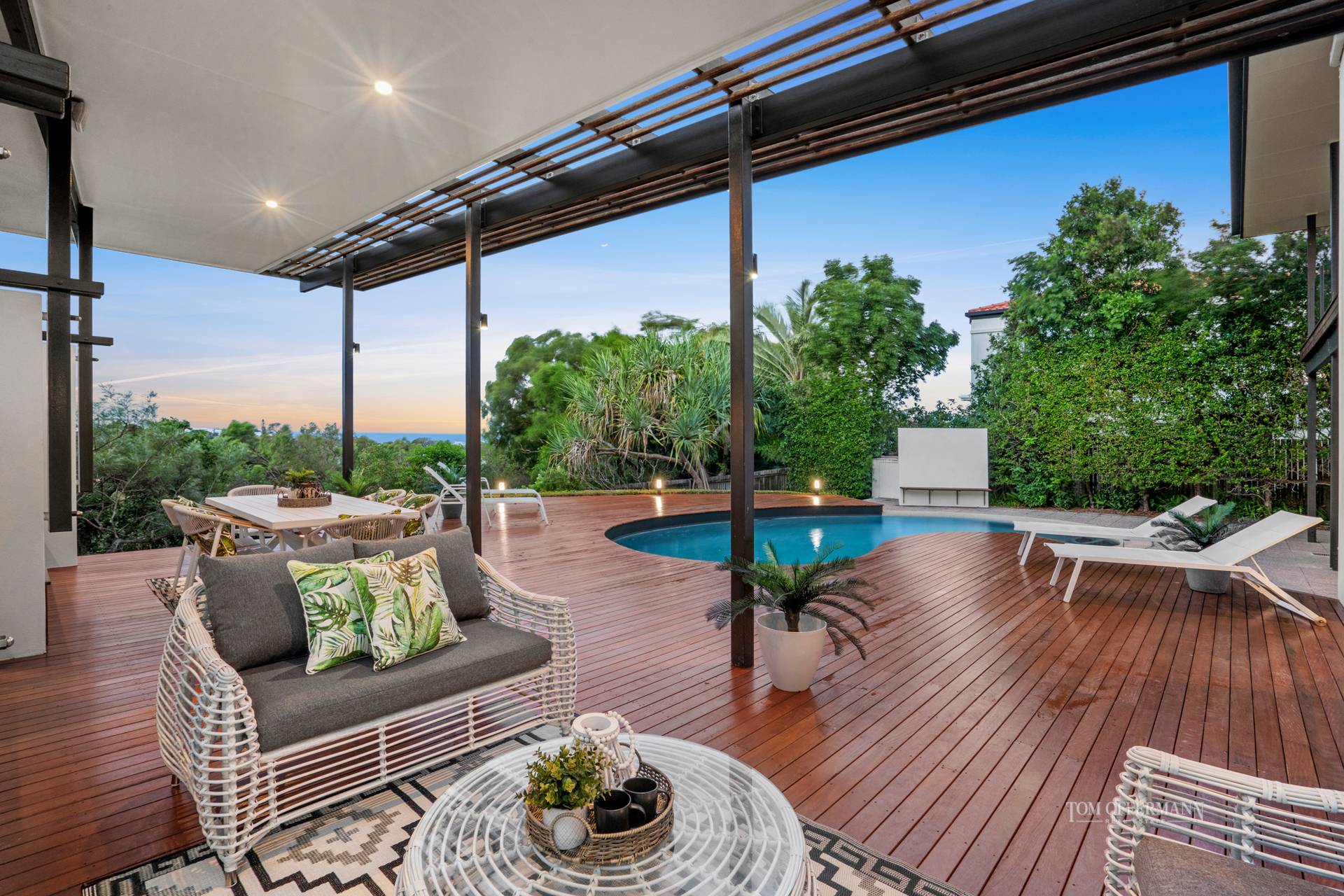 • Pool/Terraces: NE-facing 10.3mx4.6m/massive timber decking incl undercover 1.7mx5.9m off living & 10.8mx4.6w on nth side w custom booth-style seating & outdoor shower