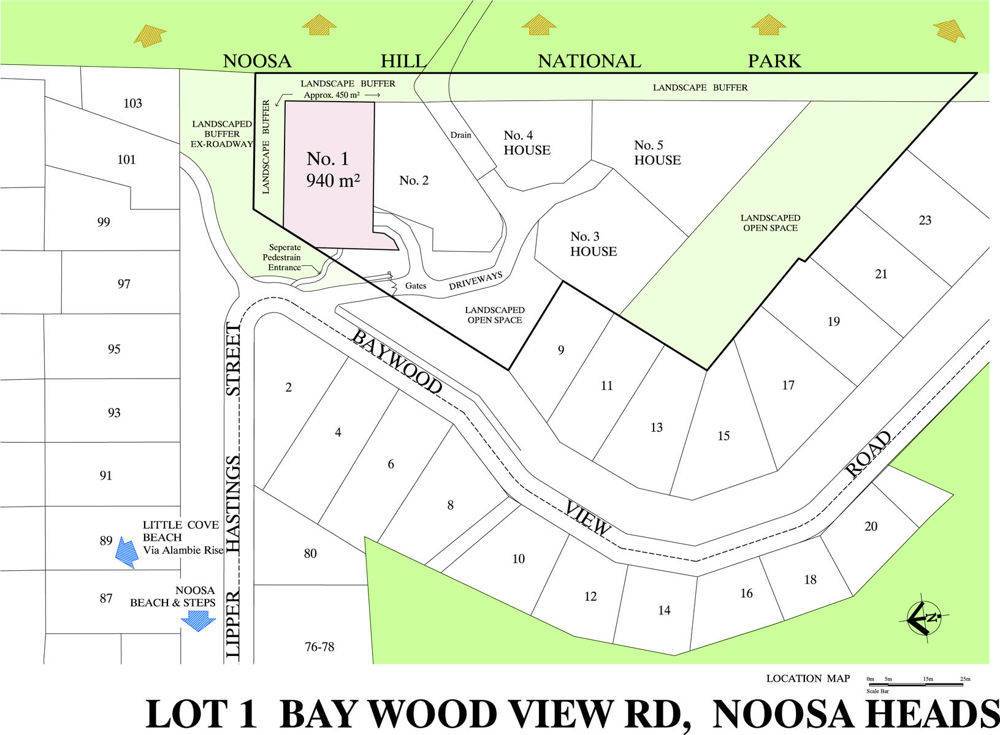 Lot 1, Bayview Woods offers a tranquil rainforest setting in an exclusive gated complex just above Hastings Street and Little Cove beach. At 940m2 it is almost double the average size of land in the area and adding to that are wide vegetation buffers and National Park giving this site an unparalleled sense of space.