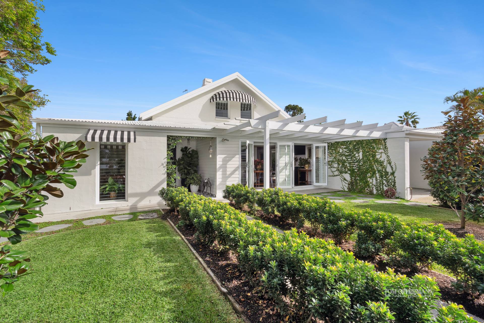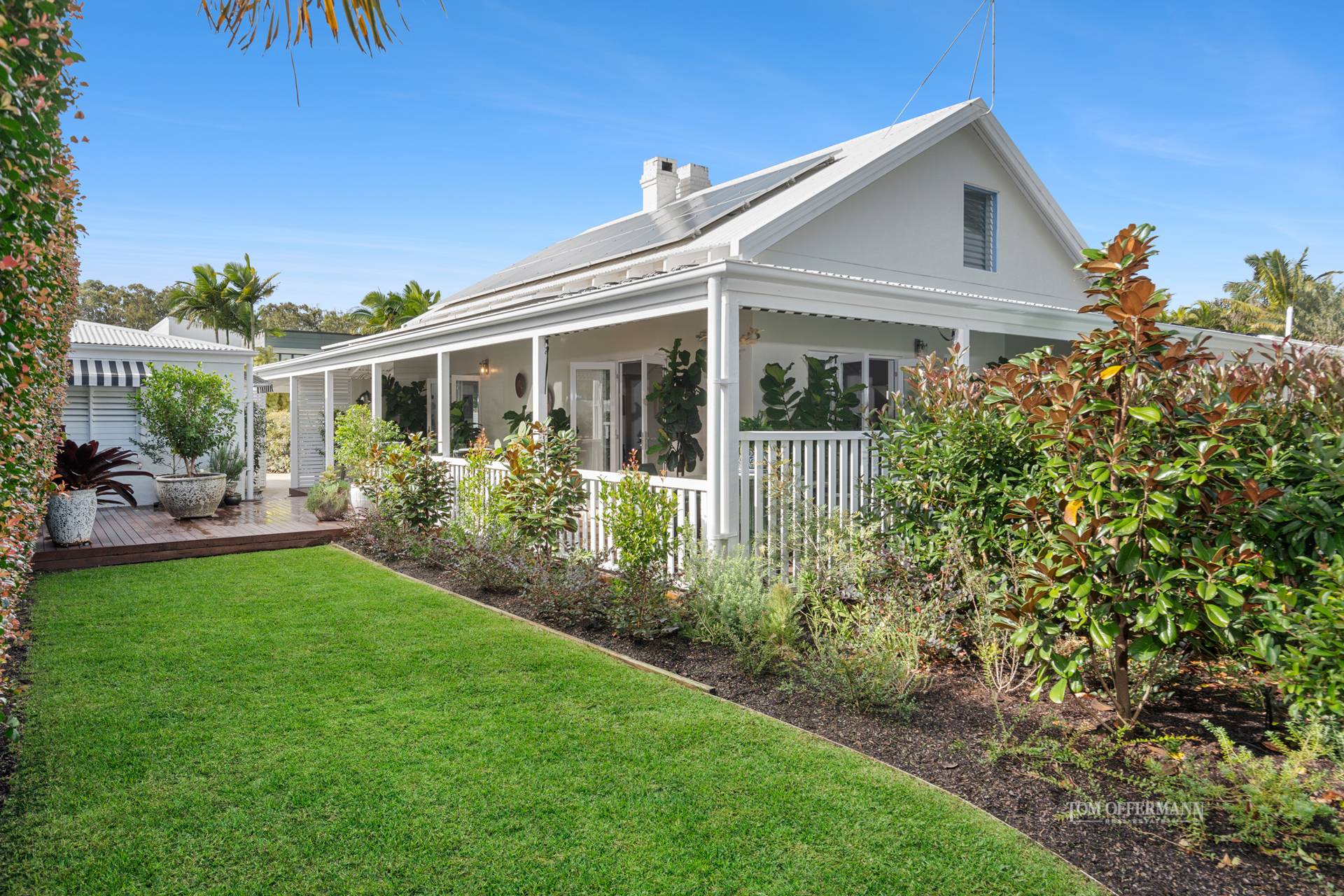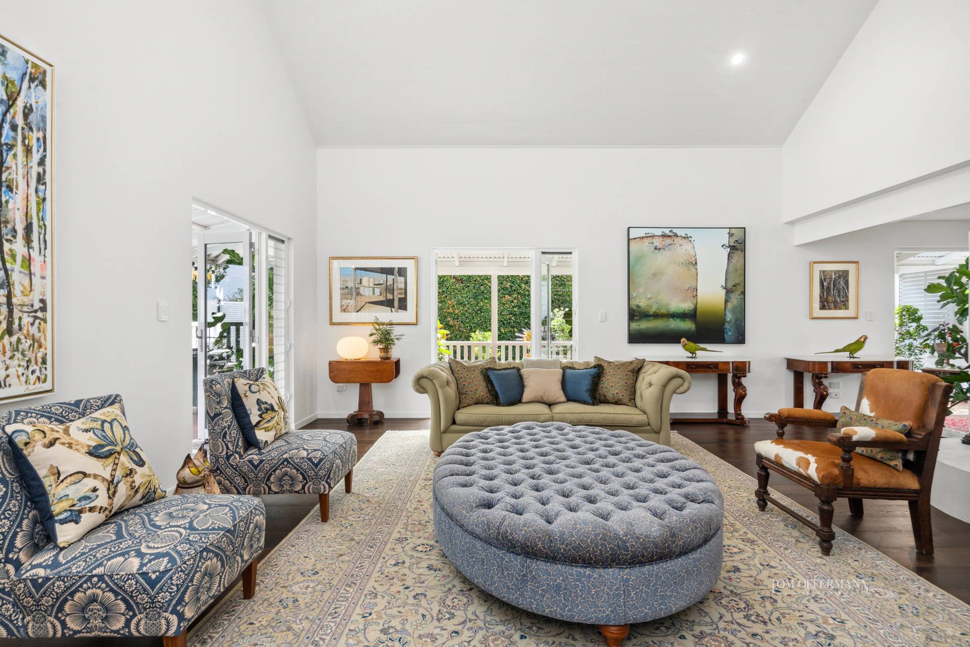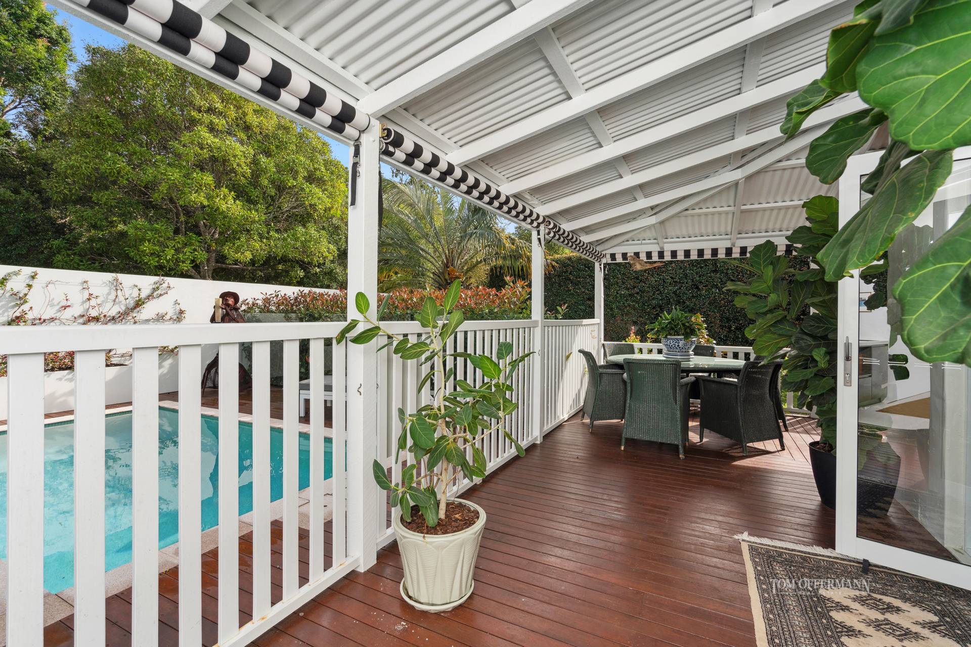 The glistening white exterior and turquoise front door are accentuated by the sun's bright rays; the front lawn is fringed with lawn surrounded by lillipillies; and wonderfully wide verandahs, the obvious domain for year-round alfresco living and casual dining, not only wrap the north and western sides but they also overlook the dazzling pool, sun terrace and garden.