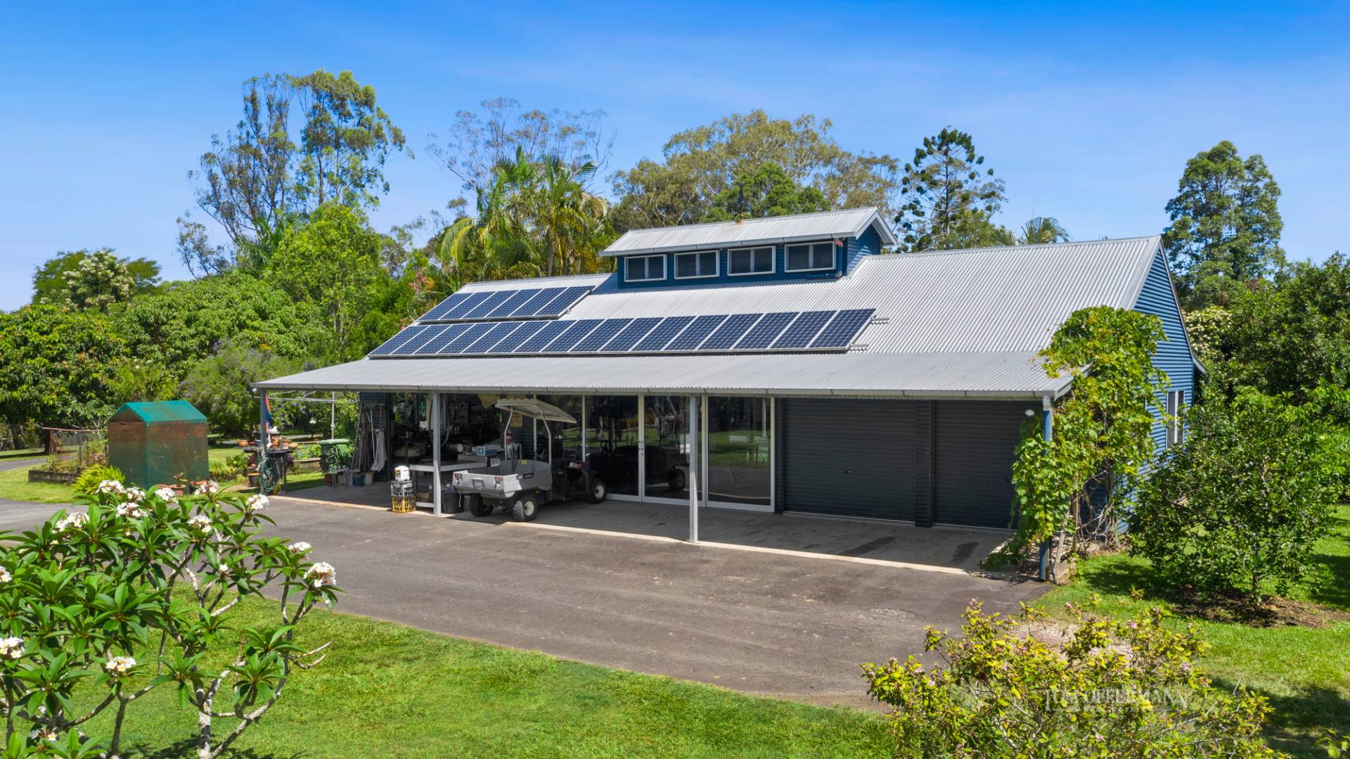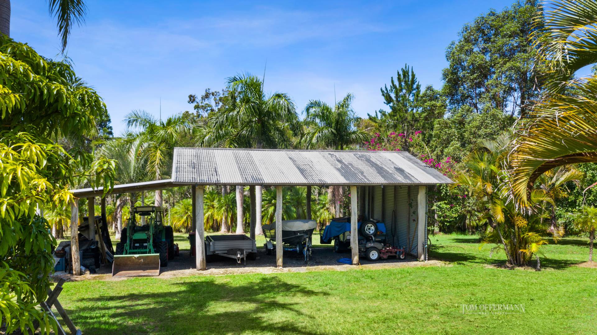 The brief by the owners for construction of an oversize shed running parallel to the pool is more than capable of housing bikes, boats, vehicles and all the essential coastal toys. In addition, there is a traditional covered area for farm machinery. As you stroll the house grounds a vegetable garden supplies an abundance of produce, mature citrus hang laden with fruit and a large mango tree stands proud.