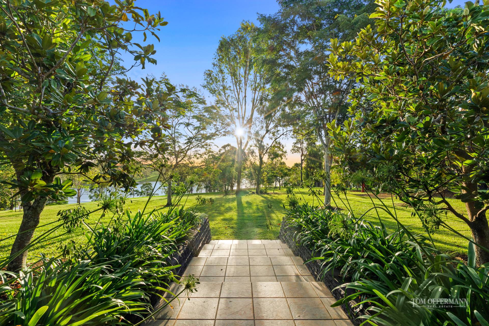 Amazing to think that this property was a blank canvas apart from its early life as home to a 7500-strong palm plantation. Mighty Cuban Royal and Triangle Palms have been selectively maintained and the open grassed slopes skirting the lake are interspersed with the remnant forest of Brushbox, Eucalyptus and the sight of a towering Hoop Pine commanding one slope.