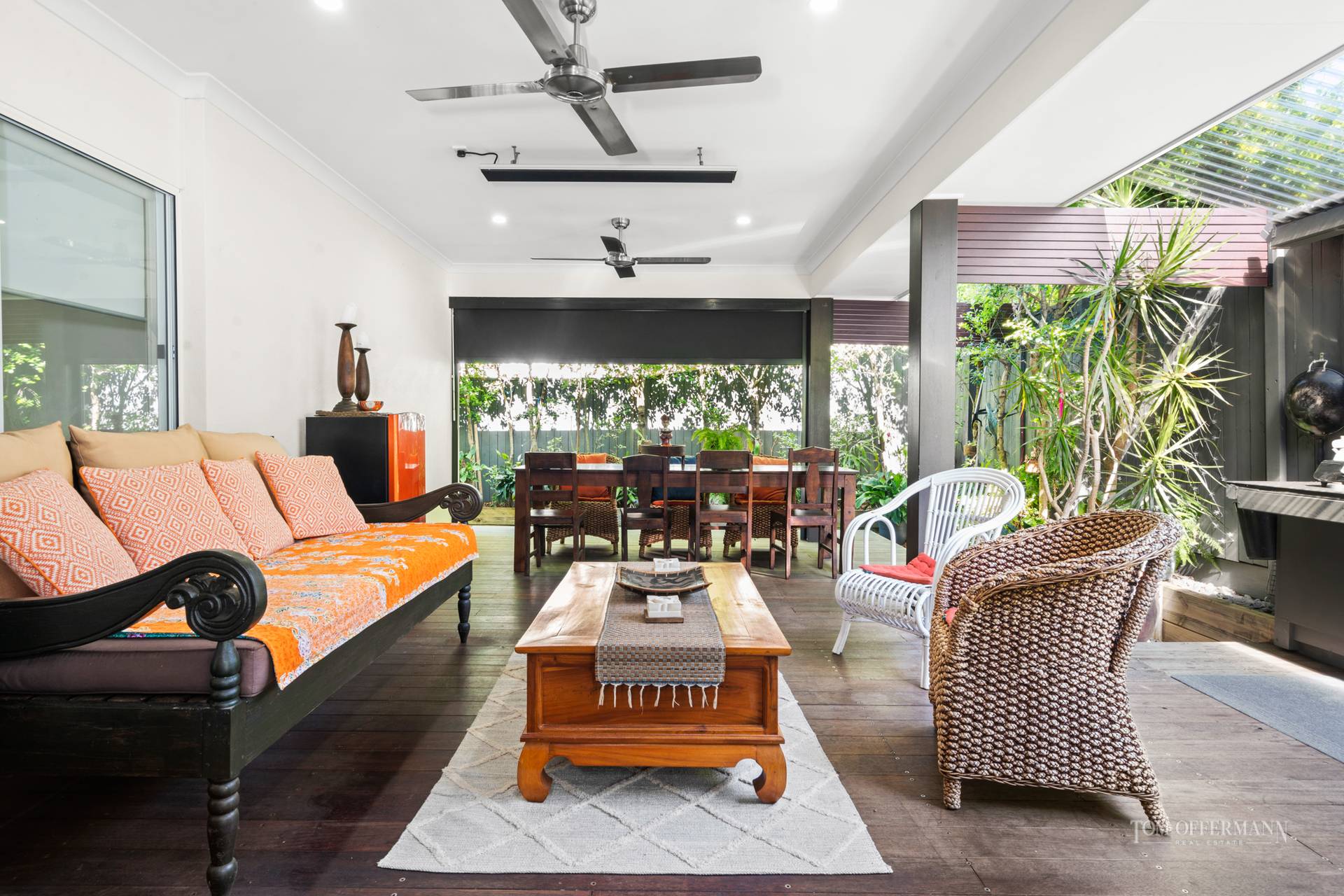 Admire Pandanus and bright Tibouchinas partially fringing the north-easterly-facing courtyard. Coffee mornings and sundowners spring instantly to mind.