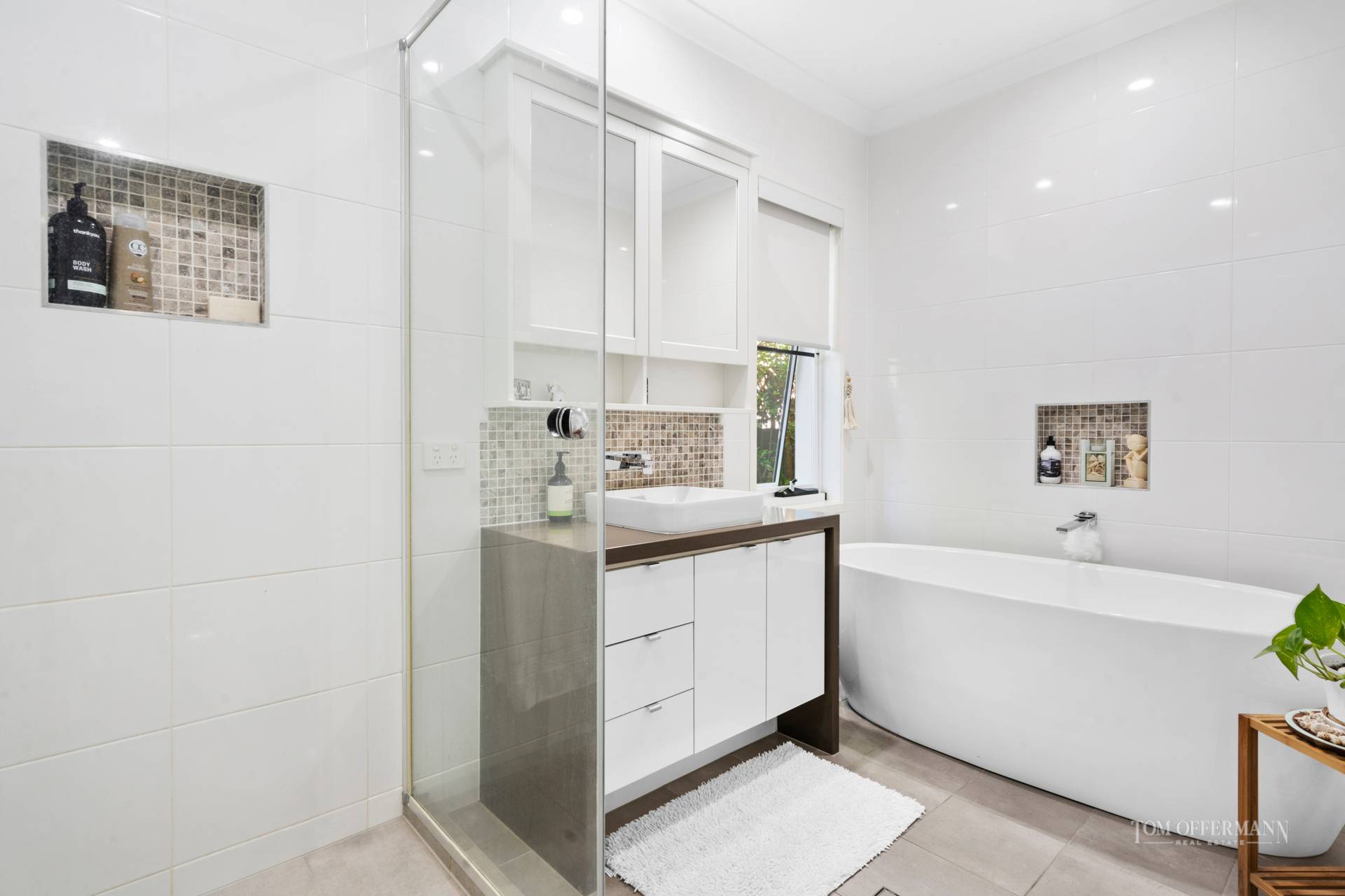 The hub of the home, where every facet of entertaining is a breeze, is the L-shaped kitchen with huge island/breakfast bar, stone bench tops, walk-in pantry with window into the garden, plus the latest appliances including a 5-burner gas cooktop.