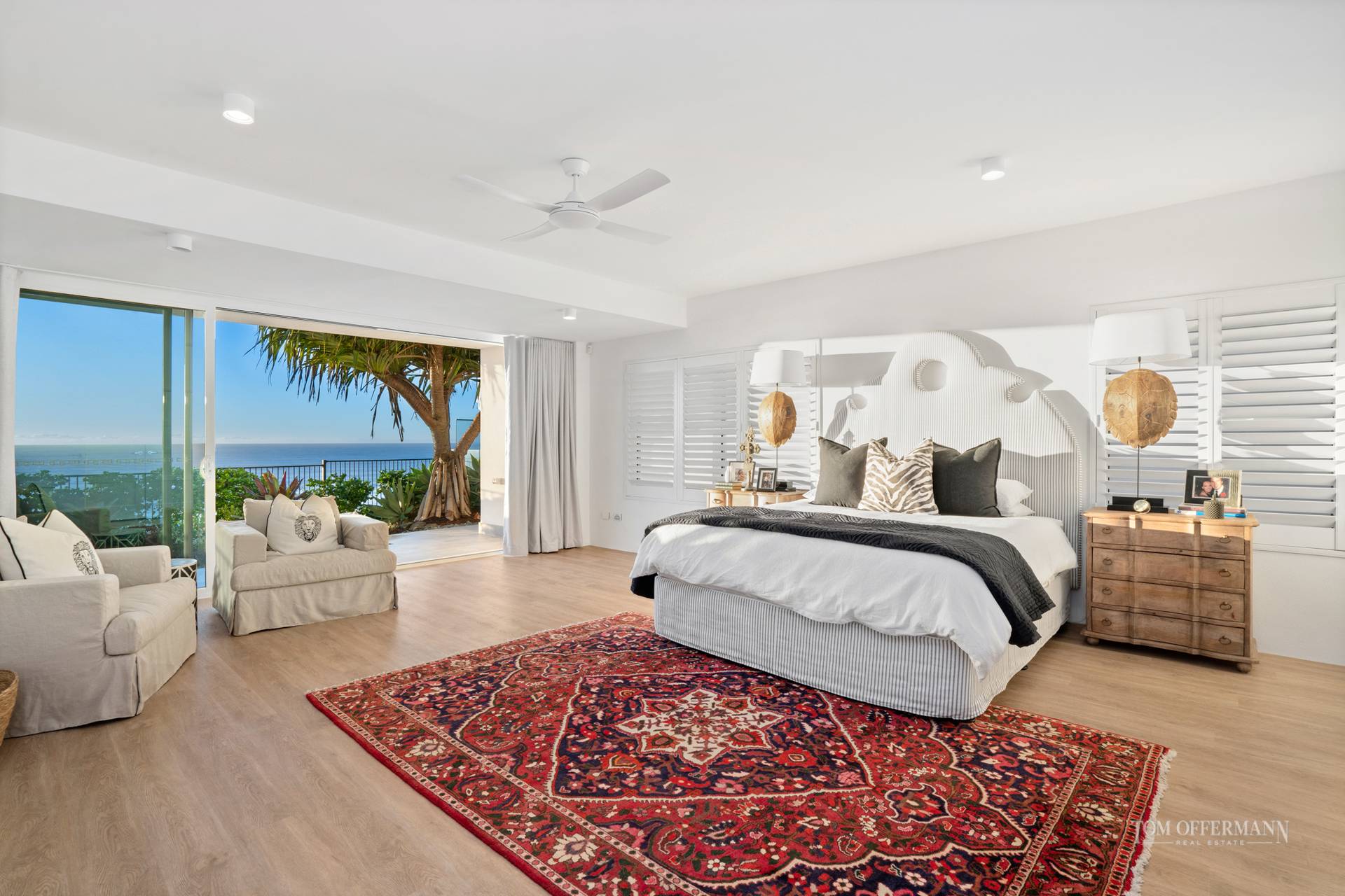 In the thick of Sunshine Beach's illustrious beauty, what appears to be an understated modernist residence from the street, makes a quantum leap into an imposing sophisticated beachfront residence, with Nature's canvas of the Coral Sea from Lions Head to Point Cartwright, taking centre stage.
