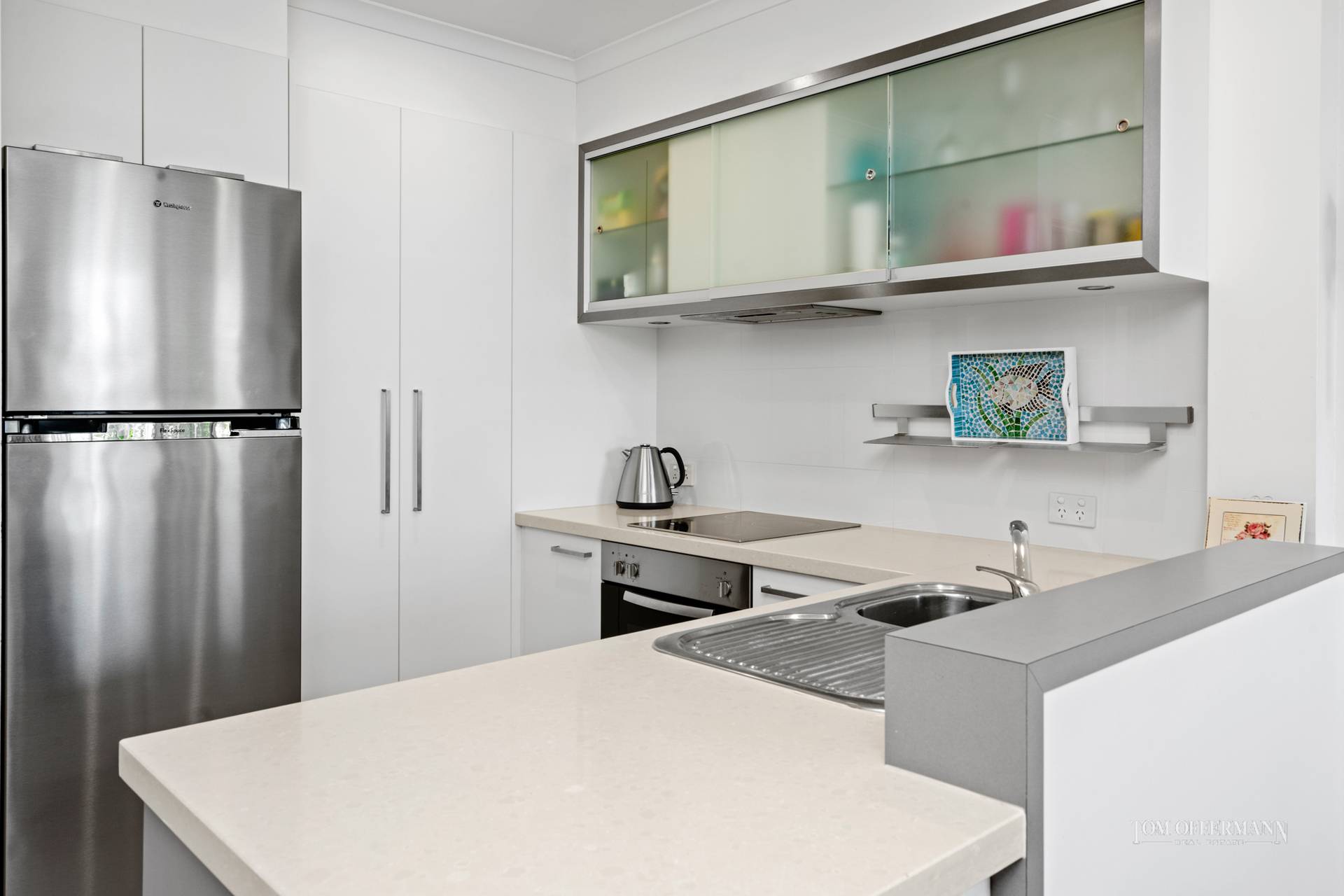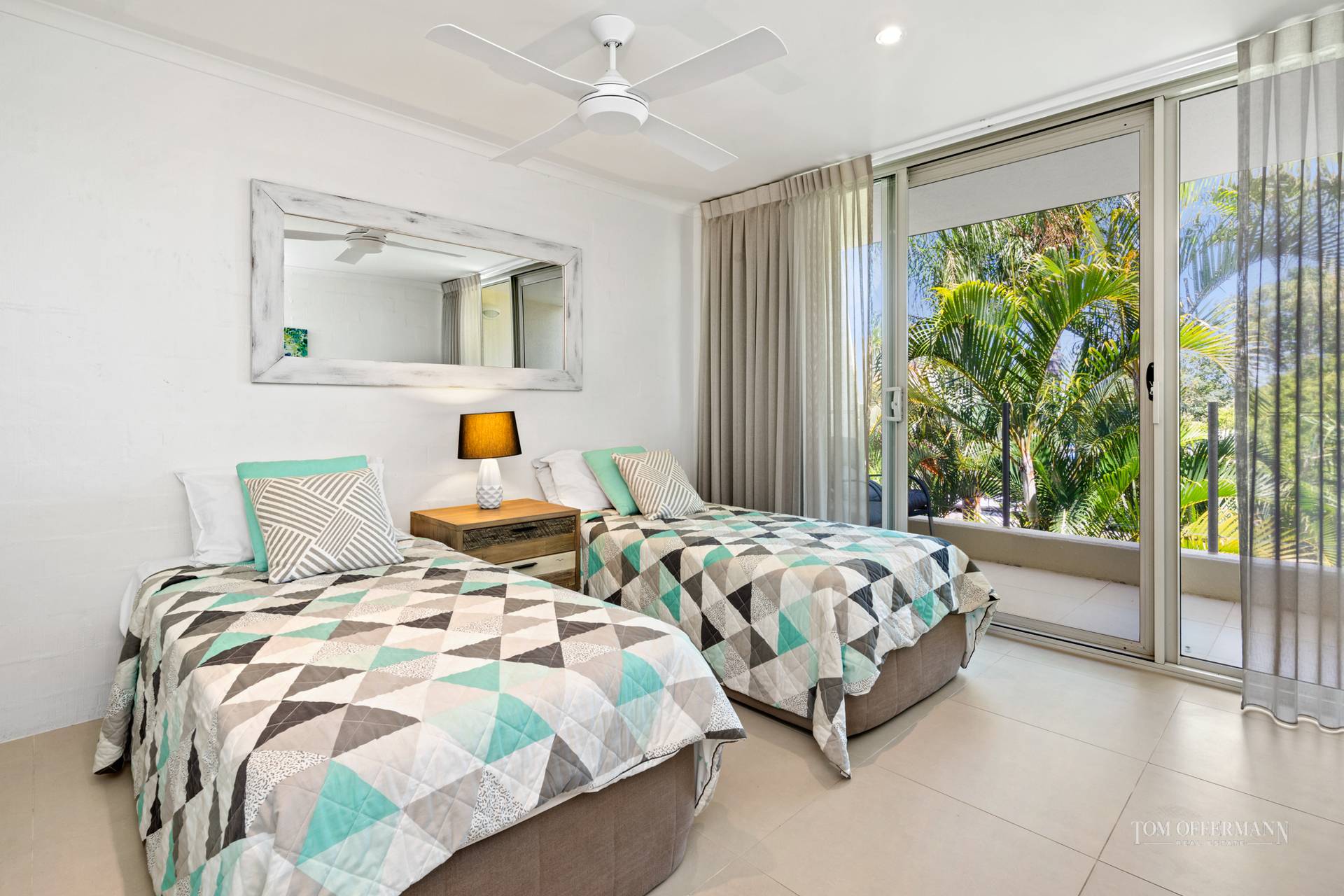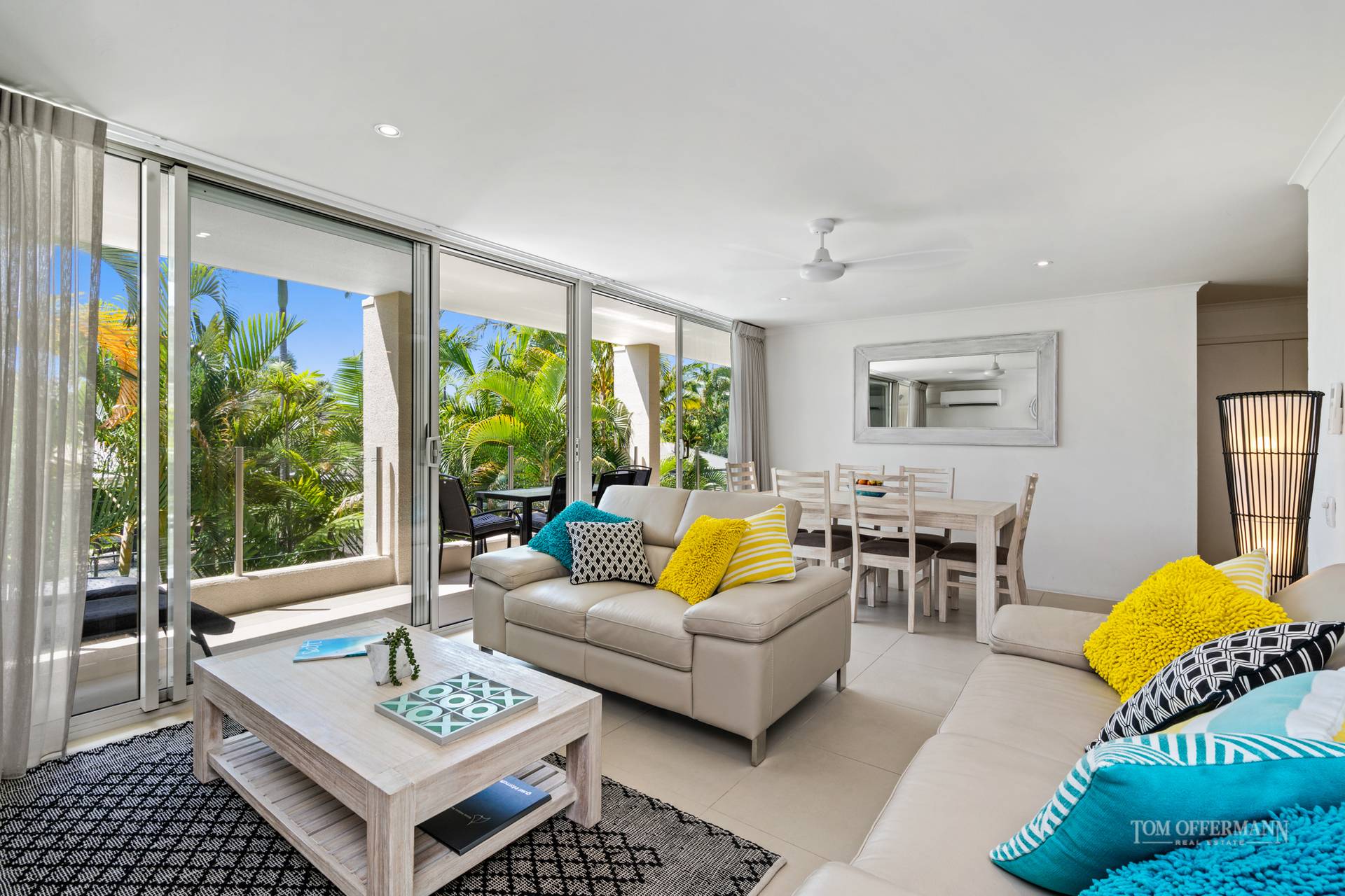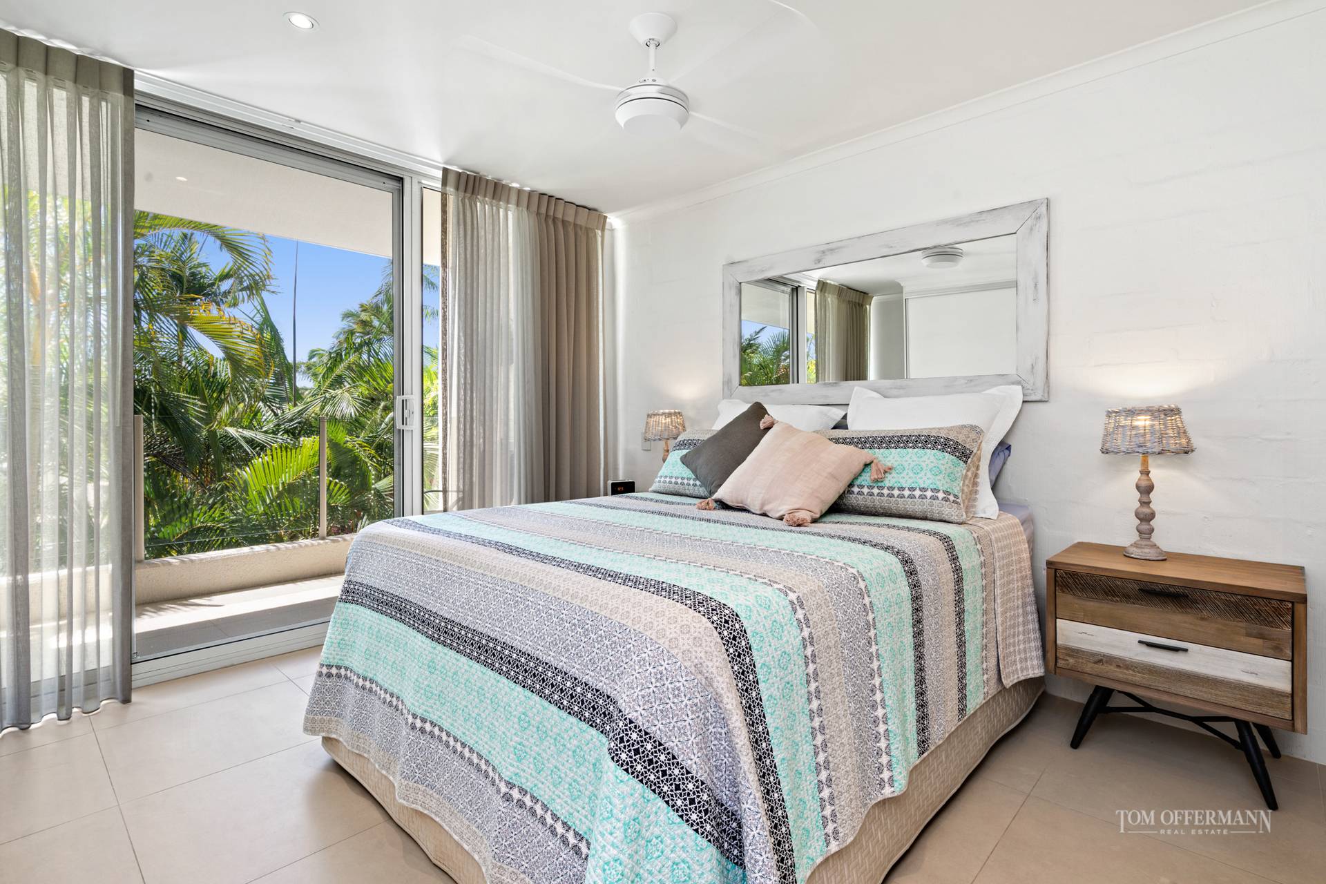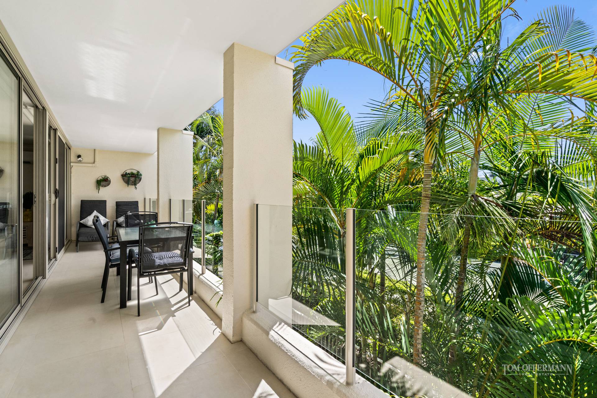 Facing north across the tropical gardens of one of Noosa's most desired waterfront complexes, this renovated top floor apartment floods with natural light and cooling breezes.