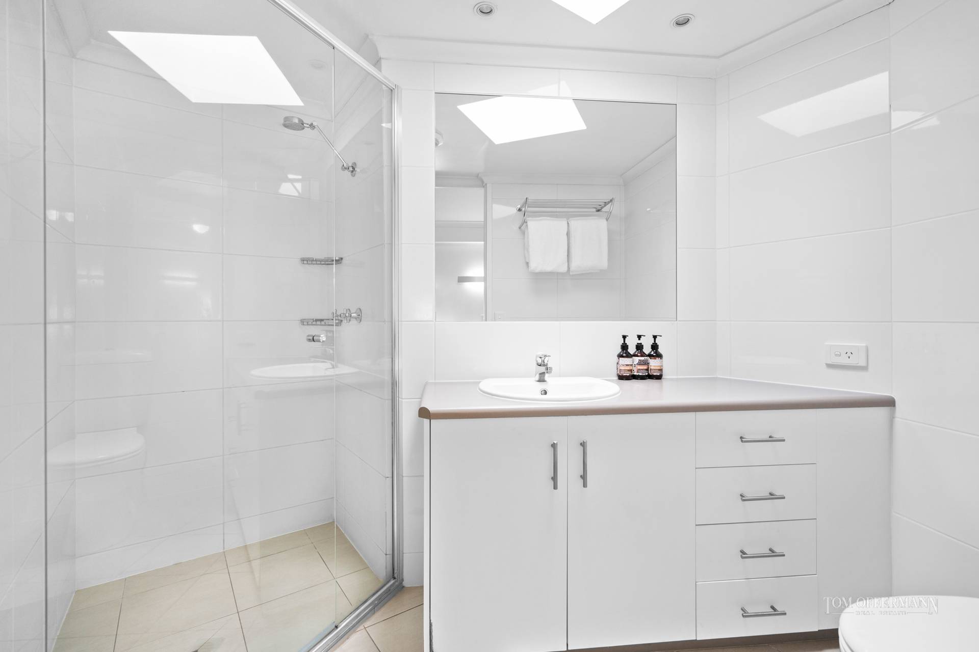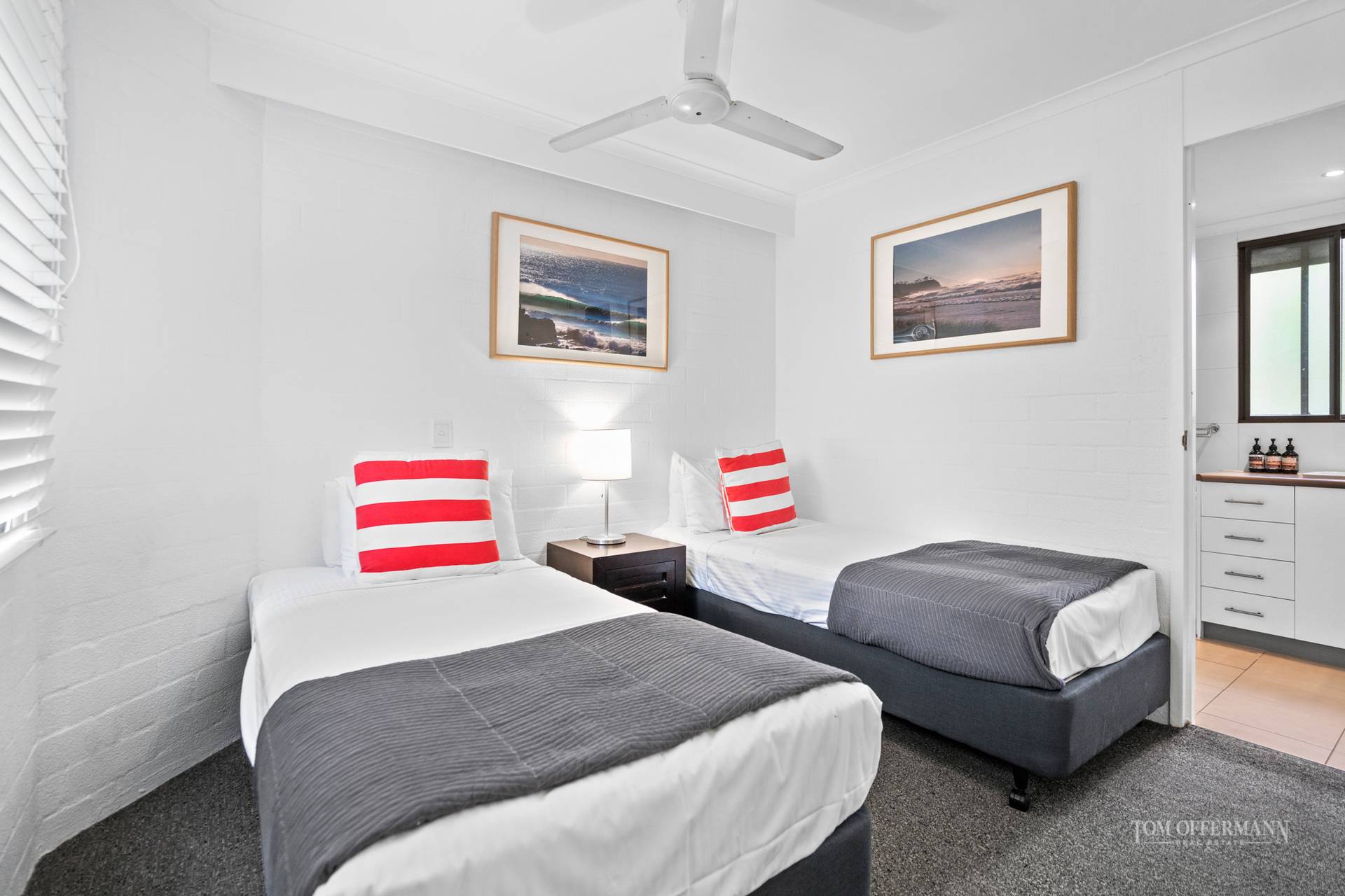 Dual lockable entries from the main front door allow the opportunity to segregate the upstairs bedroom suite from the main apartment downstairs which is perfect for shared holiday use, especially given the two included secure car parks. The main apartment consists of a full sized kitchen, generous living and dining space and two bedrooms at opposite ends of the apartment, both with ensuites and robes. Bordering a dual key setup, the configuration affords the option to lock off the upstairs suite for personal use or separation between guests or can be let out as an entire fully self contained three bedroom apartment.