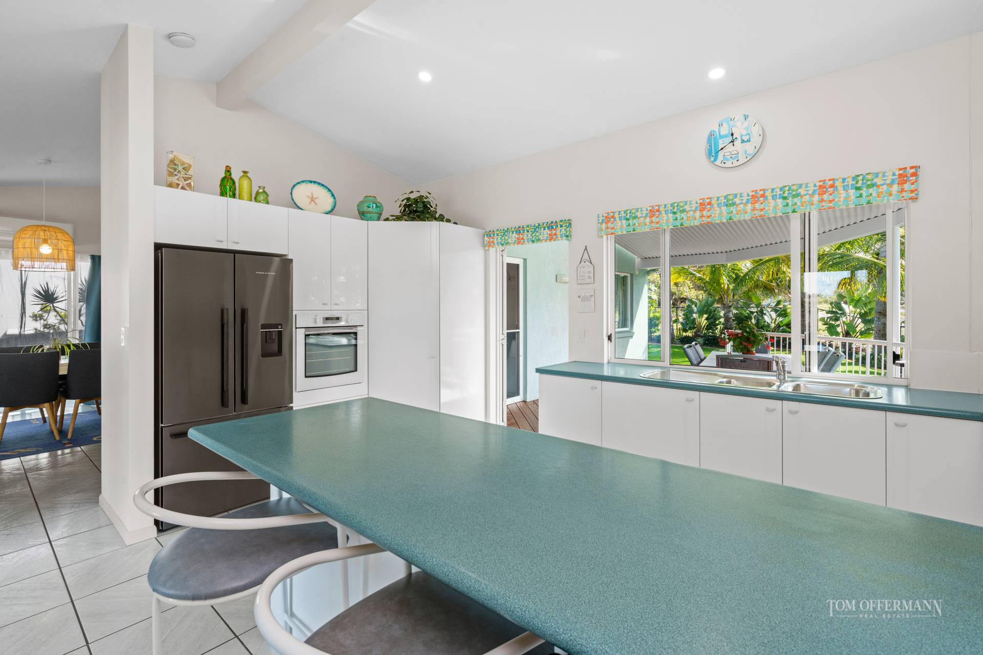 Appreciate the private backyard vista from the centrally located kitchen, the functional layout flows to spacious undercover deck, ideal for entertaining, then to a substantial lush lawn area lined with tropical palms and the gorgeous Noosa National Park backdrop. Ideal for children to play, or for you to unwind and admire the sunsets from the comfort of your own beach house.