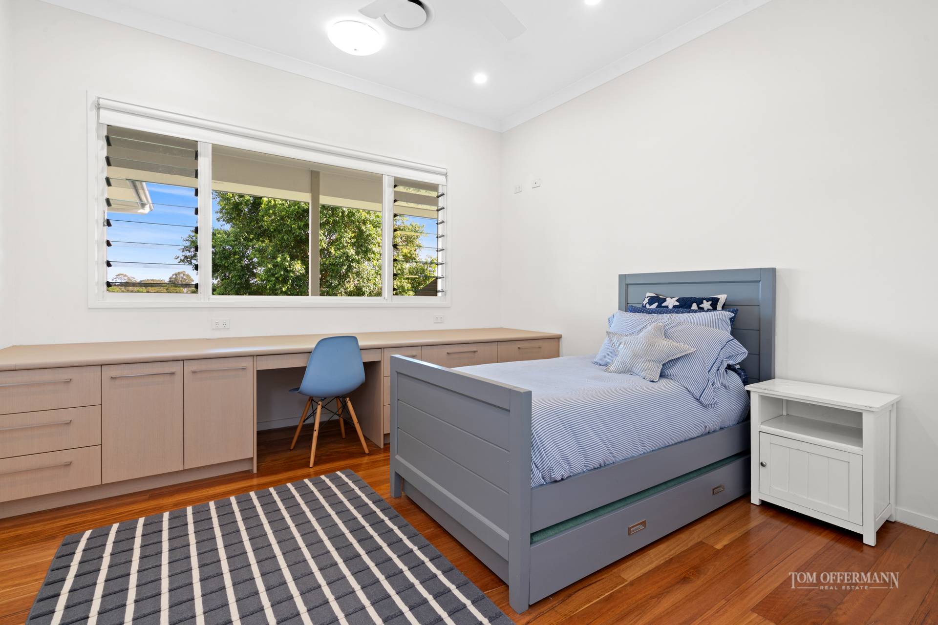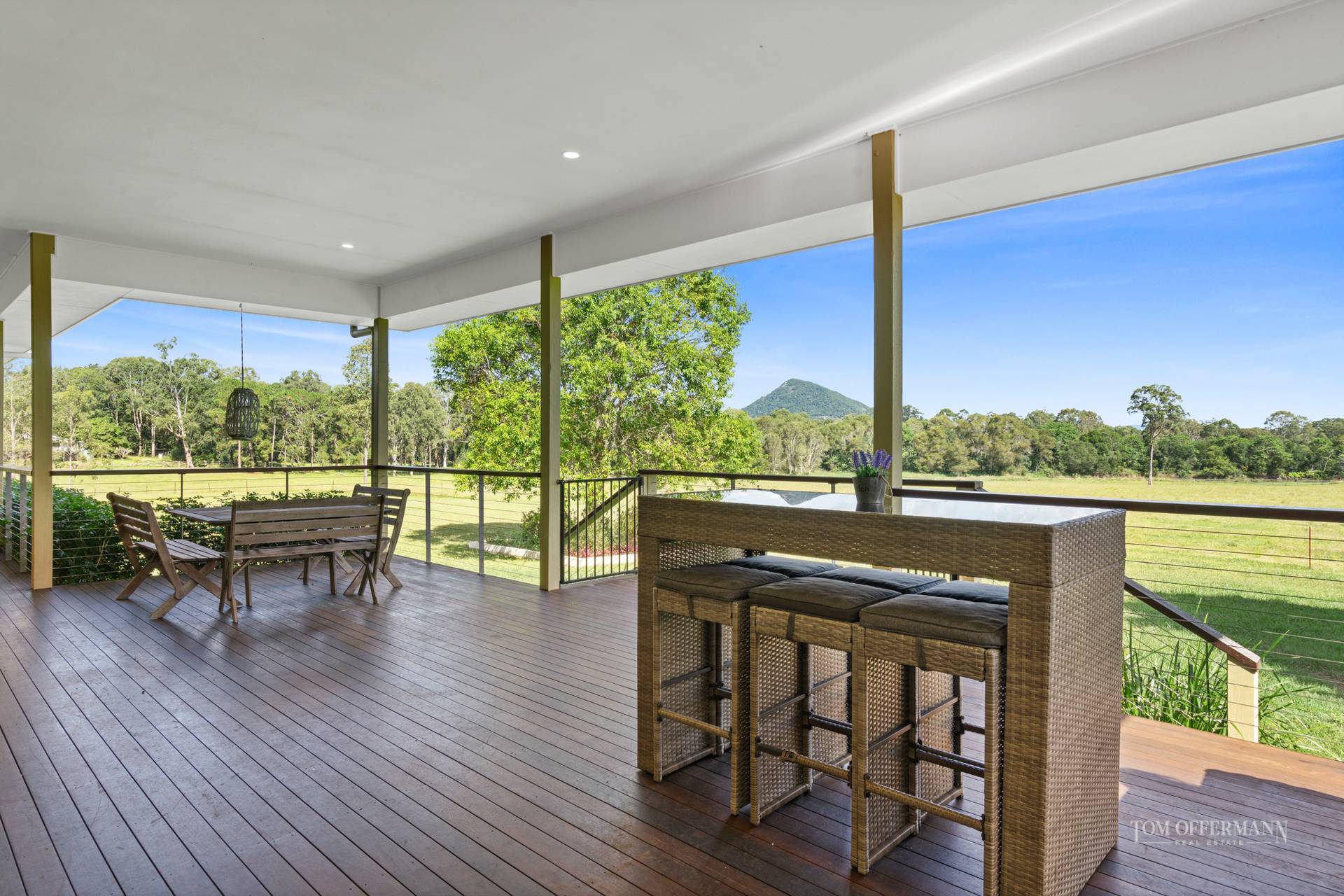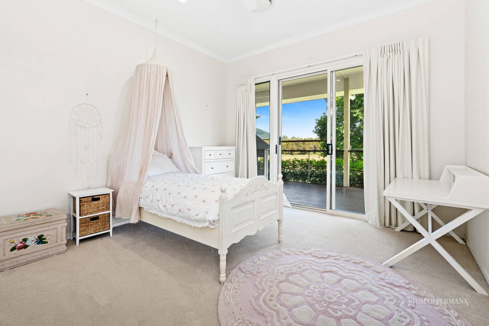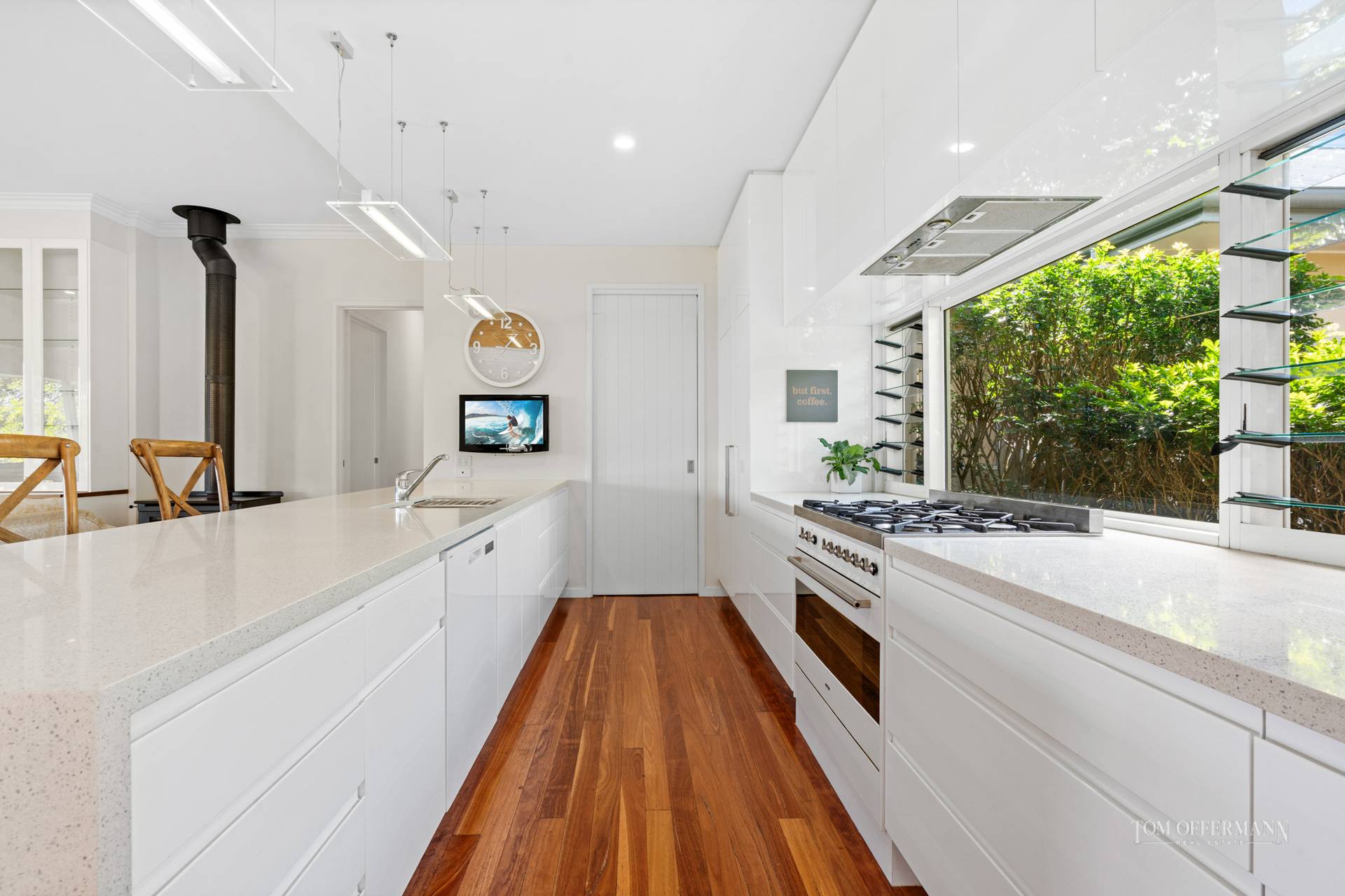 A broad roofline and deep covered verandahs set the scene for an exceptionally generous hinterland home abounds in comfort and quality appointments. Large format windows and doors accentuate livability and function, while three metre down lit ceilings catch light and spread a soft glow across wall free living and rich hardwood floors. The hub of the home is anchored by a beautifully crafted bookcase and the winter warmth of an internal combustion fireplace. A crisp white kitchen sports a Smeg white six burner gas oven, waterfall stone island bench and the luxury of a large butler's pantry with second sink and preparation bench.