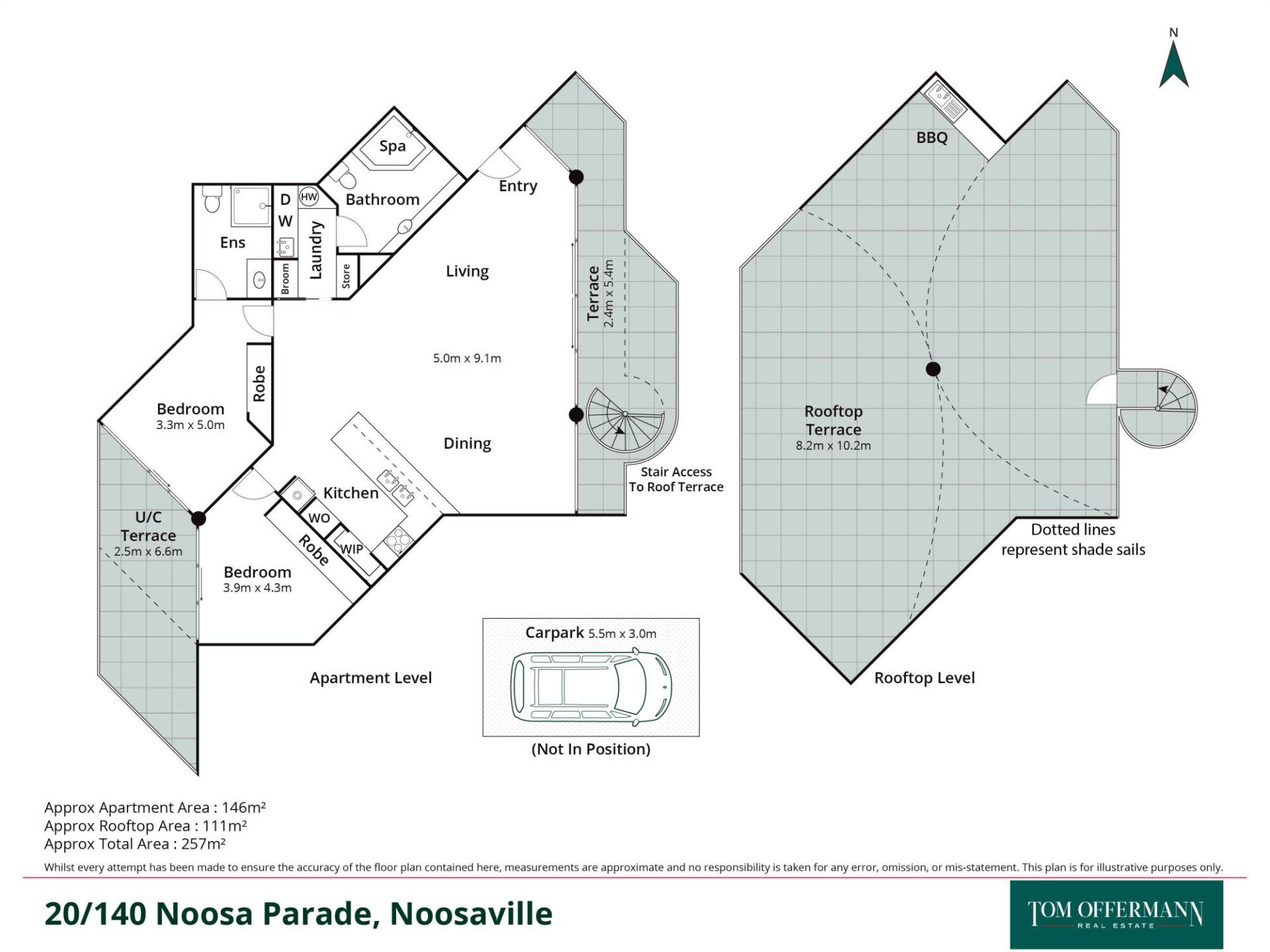 If you have set your heart on the stellar address of Noosa Parade, a penthouse with an exclusive-use, over-generous rooftop terrace which almost seems suspended above lush palms and sub-tropical greenery, plus has 360-degree views stretching to the Noosa National Park headland, paradise awaits.
