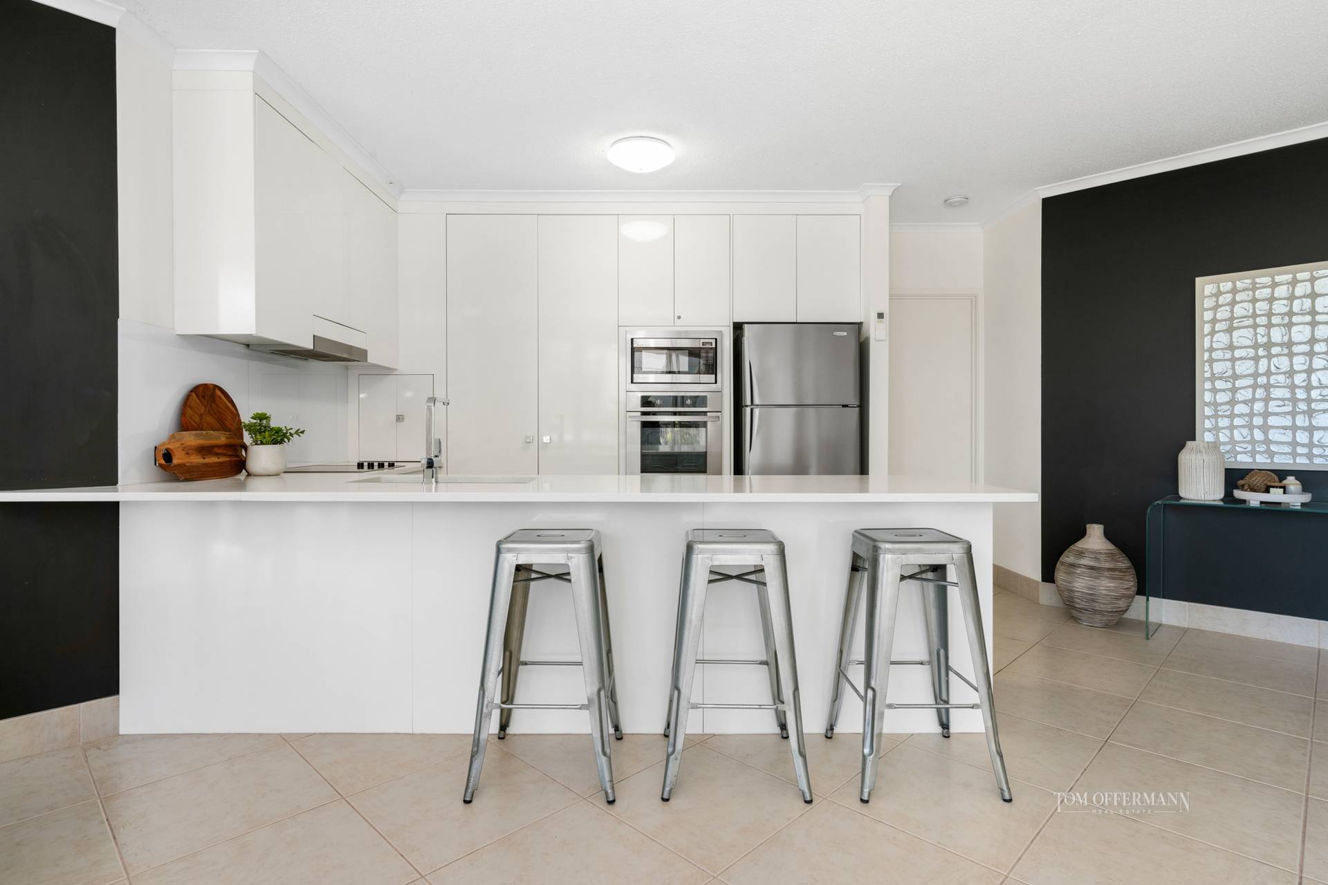 "Leave the car in its secure undercover space," says Tom Offermann Real Estate agent Eliza Coppin, who is taking the property to auction on Sunday 12 September 2021. "Stroll to some of Australia's top restaurants in Quamby Place, also Gympie Terrace, or walk to Hastings Street, Noosa Main Beach and the Noosa National Park with its world recognised Surfing Reserve.