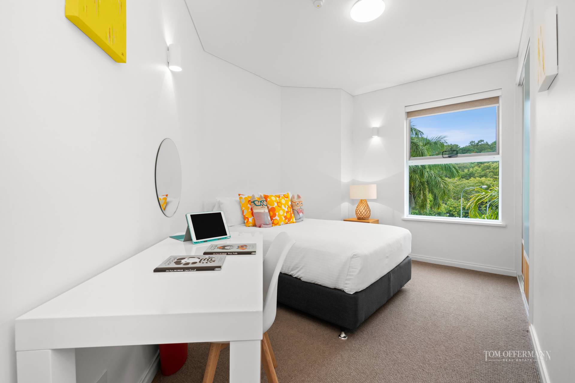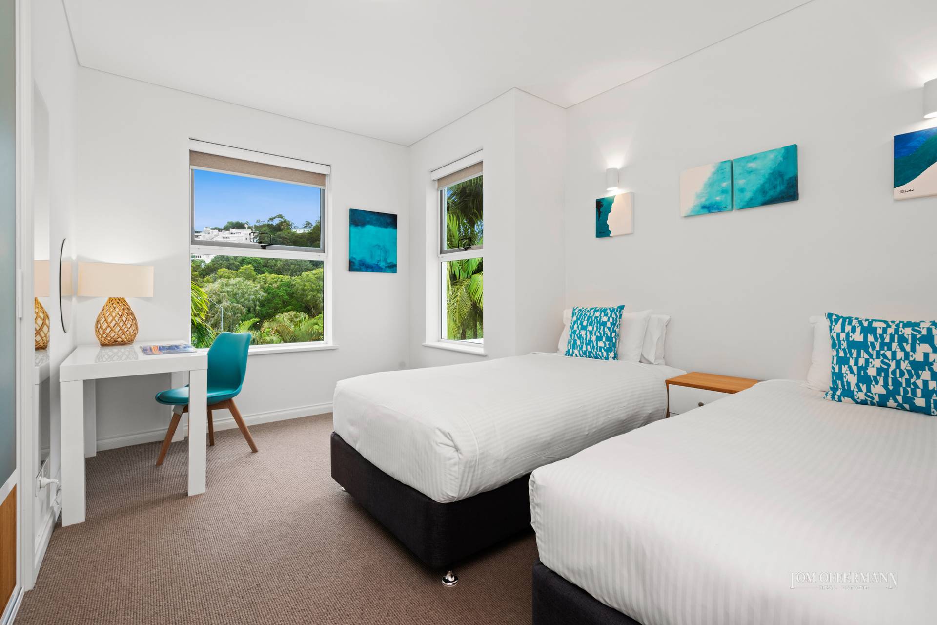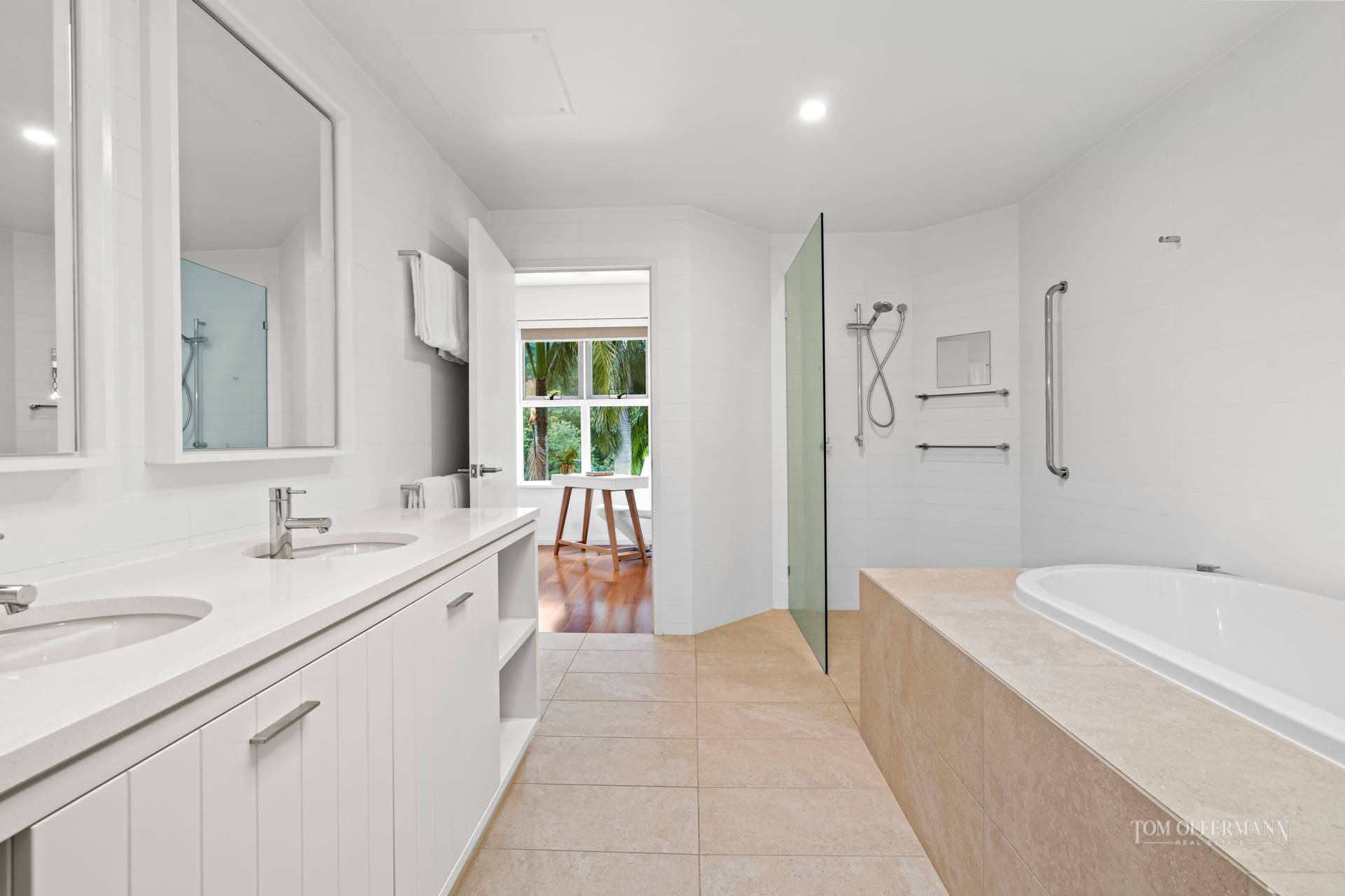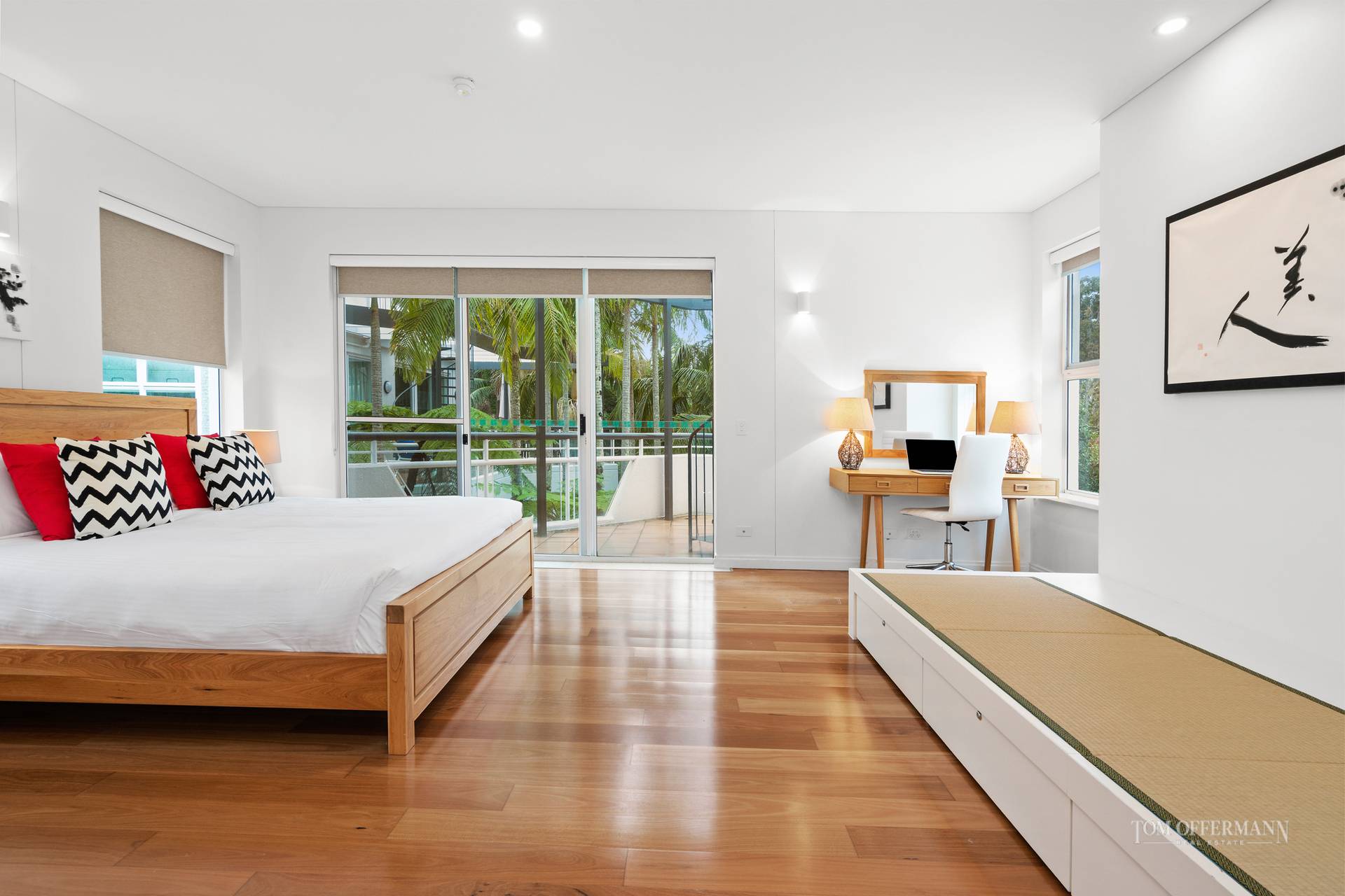 The three remaining generous bedrooms offer quality robe storage and present delightful outlooks to palms and the national park beyond and also welcome vibrant natural light and refreshing breezes, perfect attributes for absolute comfort in residence.