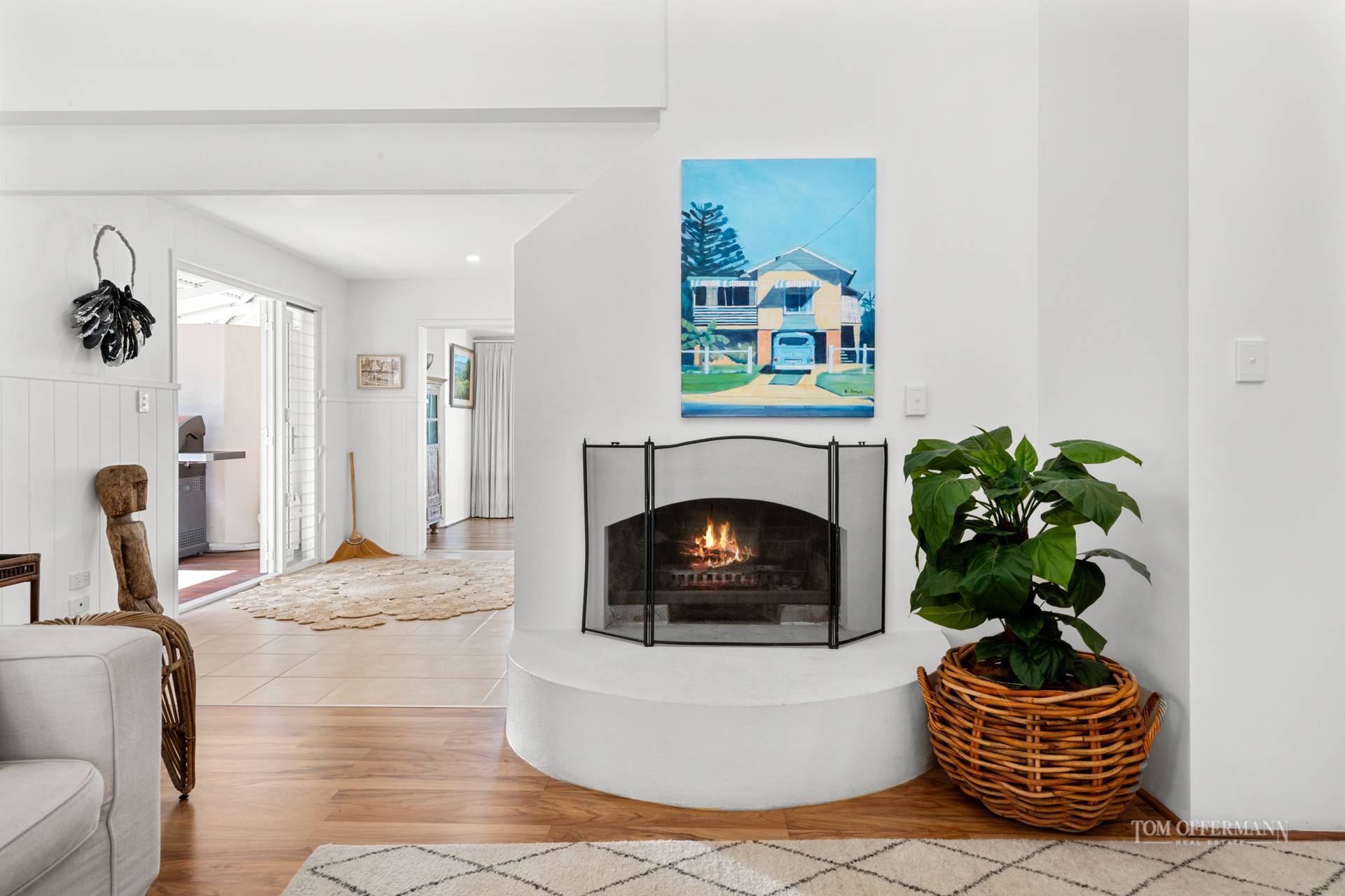 About: VJ-profile walls & ceiling; chandelier; oak-hued timber flooring; glass louvres, plantation shutters & slide-away doors; wood-burning fireplace; custom-built bookcase; storage under stairs; single lock-up garage + single carport; aircon/fans