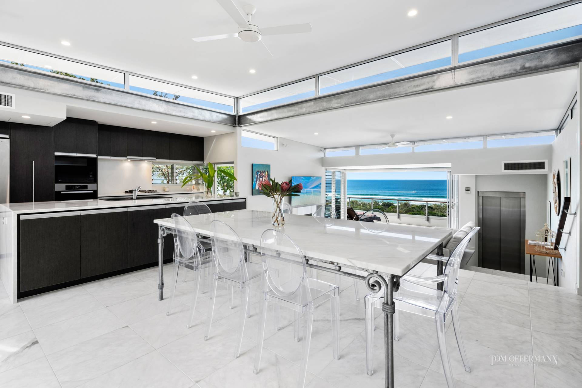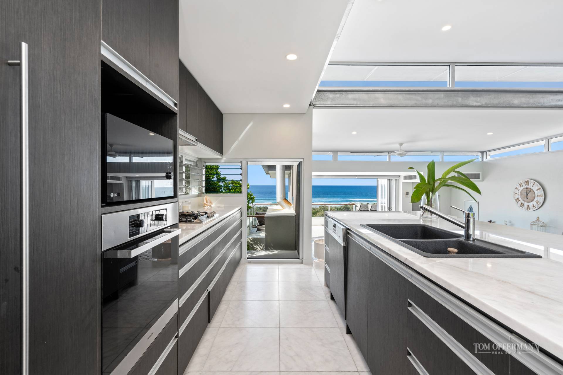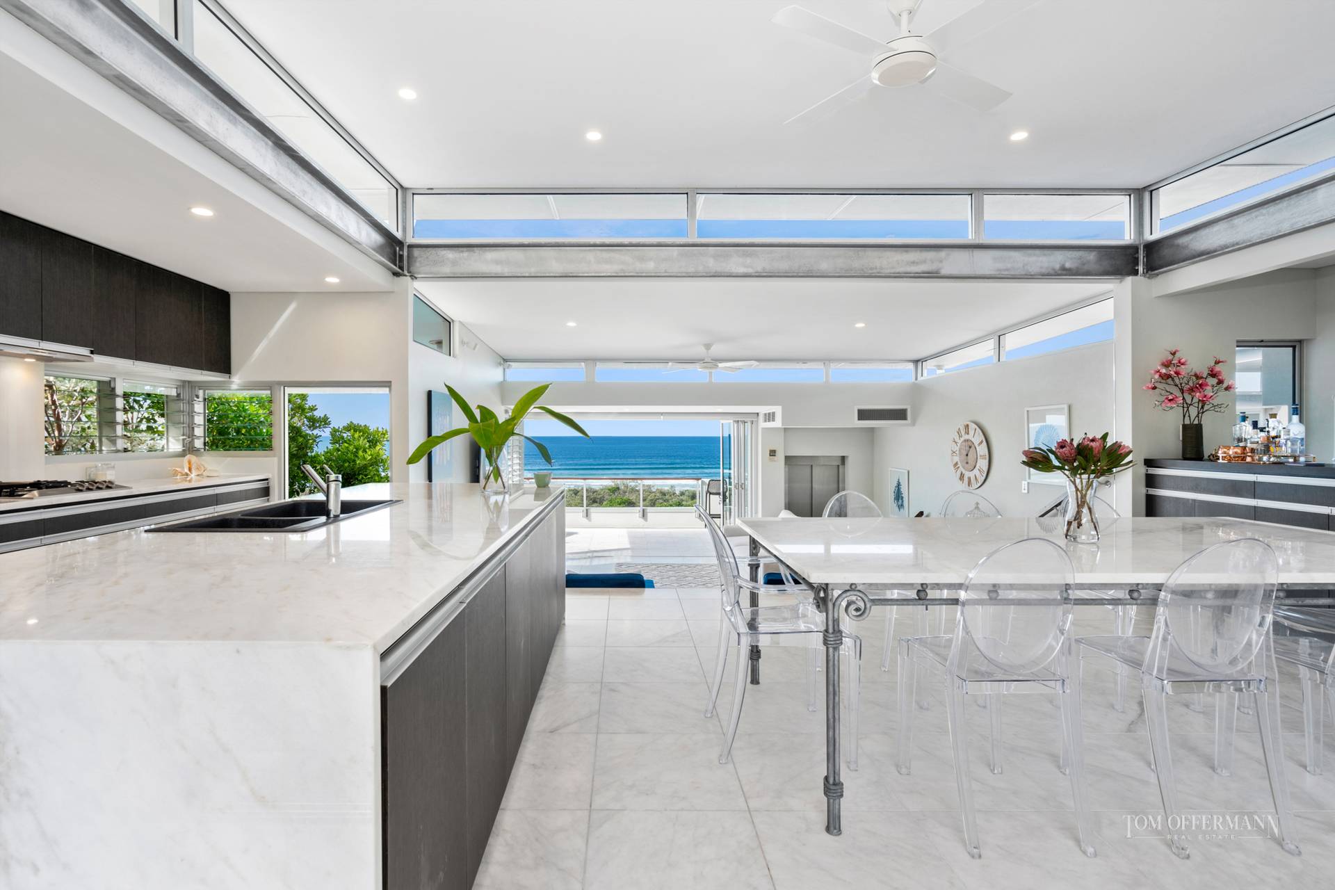 Look ahead and just stare. It's difficult to ignore the generosity of space in the light-filled, high ceiling-ed, open-plan living and dining areas with stunning marble tiles, two big balconies, wide deck and courtyard with a lush garden. Wherever you stand, all indoor and outdoor lines are blurred, thanks to 'disappearing' sliders, so the 180-degree Coral Sea views are maximised. They're absolutely stunning and from the generous balcony on the Oceanside you can see Sunshine Beach headland to the north on the left and Mooloolaba's Point Arkwright on the right.