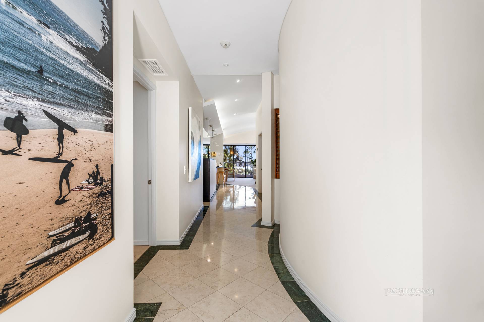 From the street entrance, admire the privileged elevated position and the national park-like backdrop with giant staghorn-studded Norfolk Island pines fringing the exterior. Alternatively enter via the secure driveway and garages.