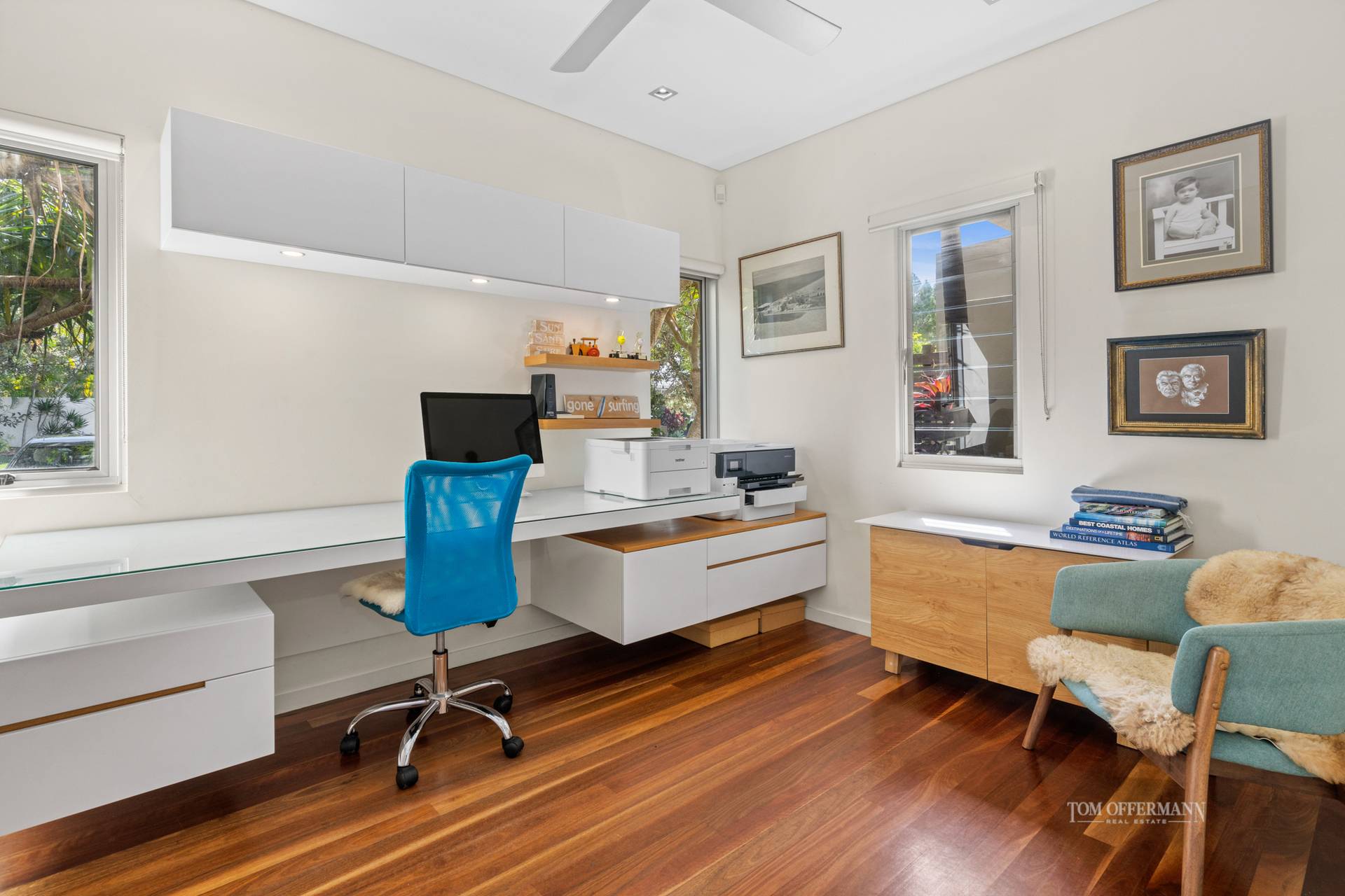 The office has also been kitted out with custom-made Timberart, nearby is a courtyard. Another courtyard on the eastern side accesses stairs to a pathway leading to Sunshine Beach village and the patrolled surf beach.