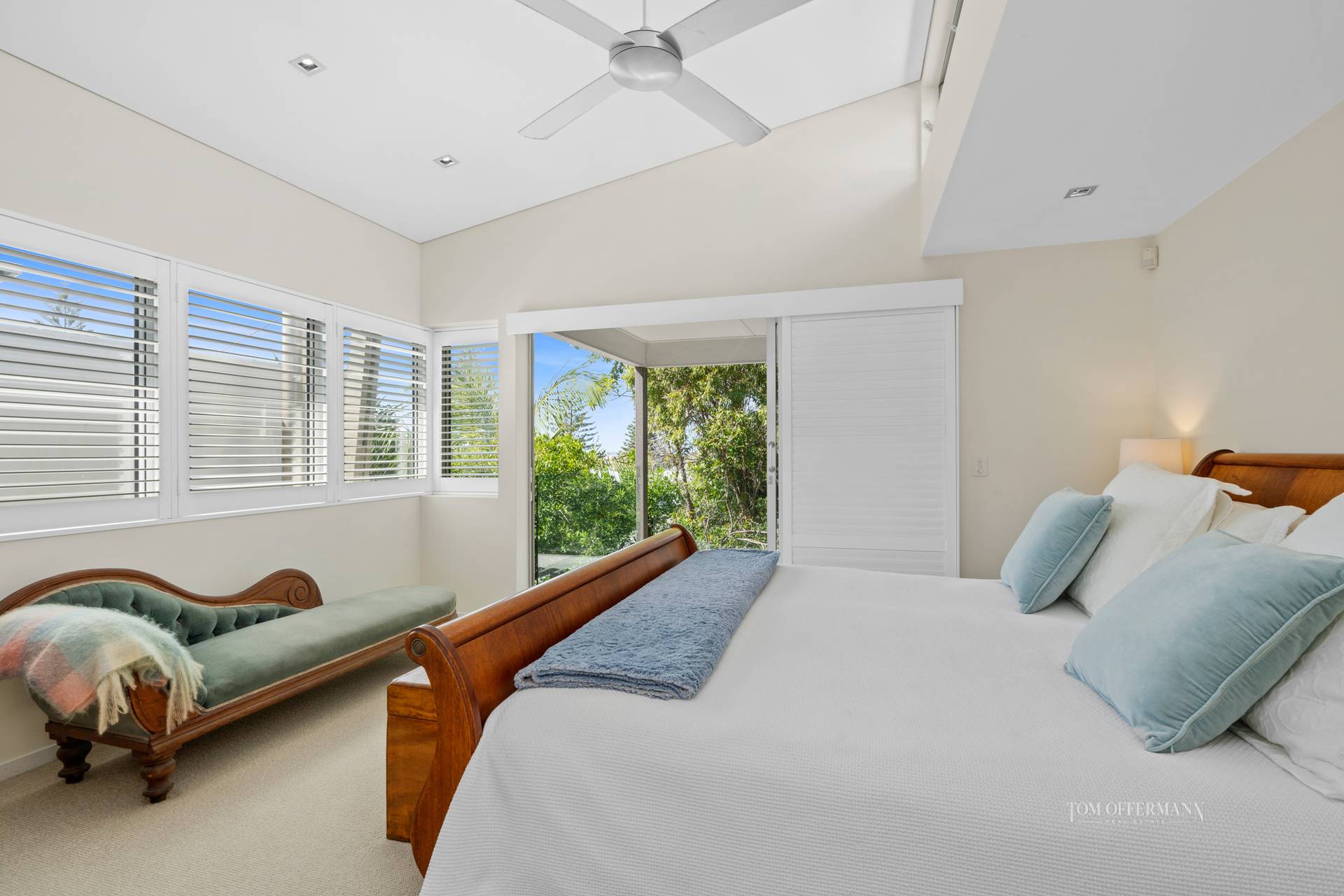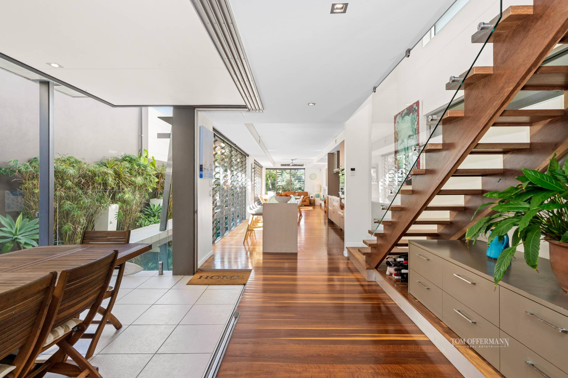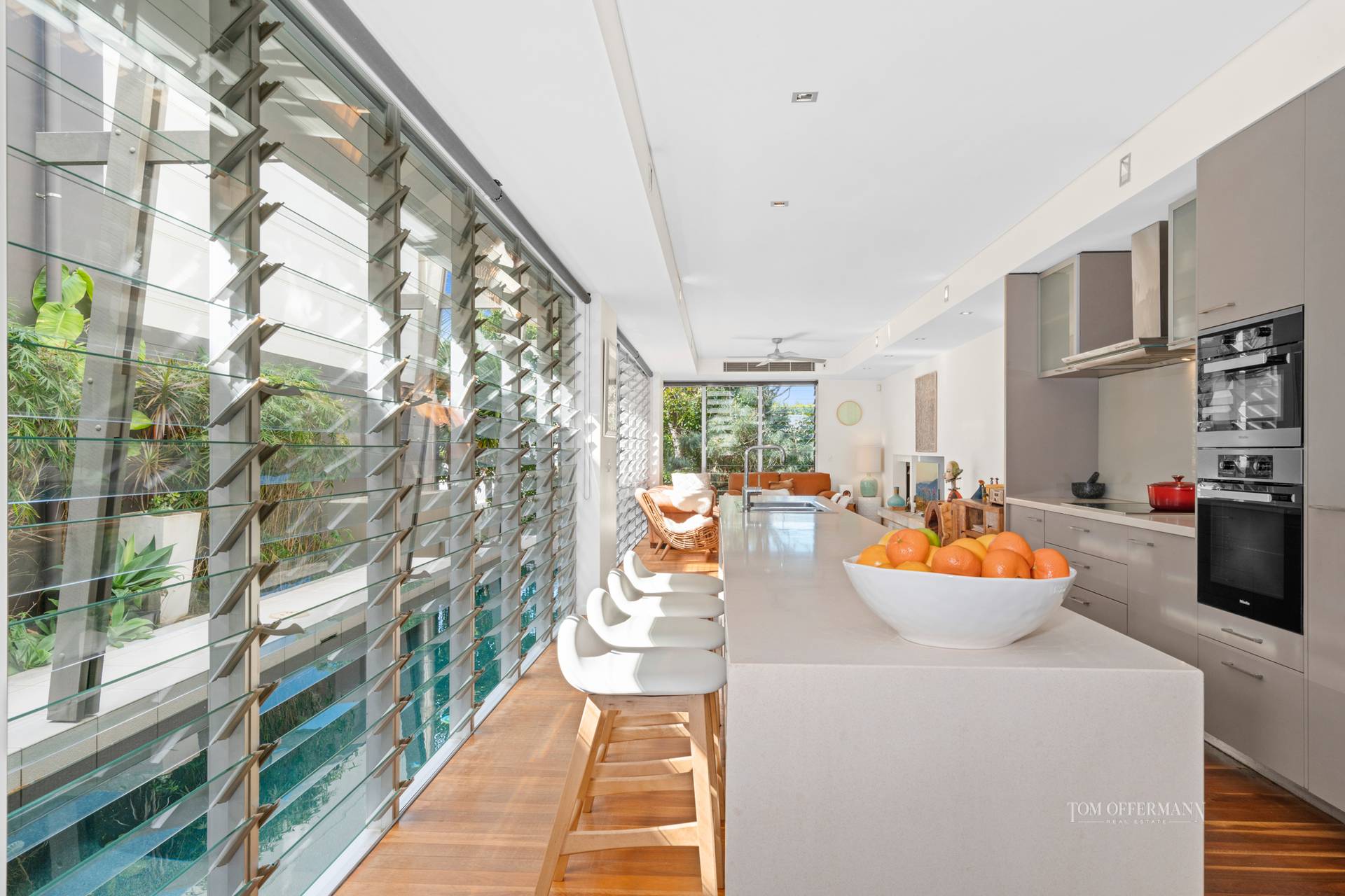 "With un-paralleled attention to detail this residence," say Tom Offermann Real Estate agents Rebekah Offerman and Peter TeWhata, who have slated it for auction on Sunday 19 September 2021, "is more a sanctuary in the heart of Sunshine Beach. It redefines the limits of an effortless lifestyle just two blocks to Duke Street, the vibrant village and a further block to the surf."
