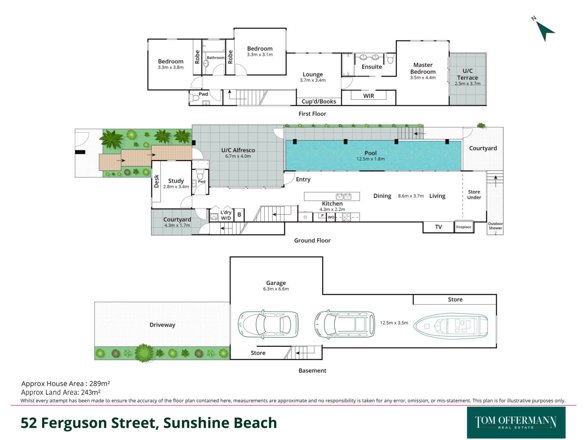 - Garage: 12.5m x 3.5m basement; suit 3 car/2 car & boat; immense storage/work area