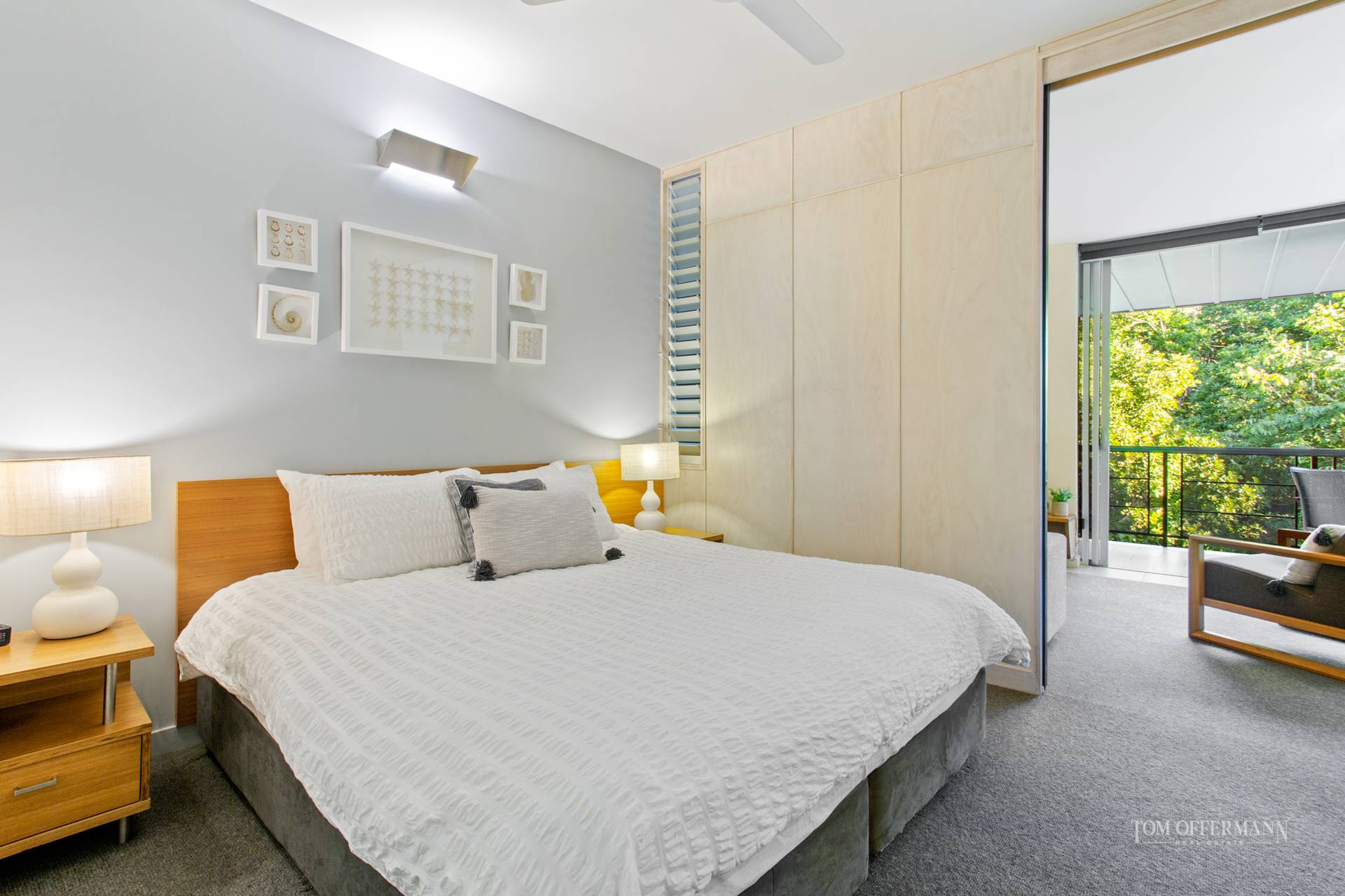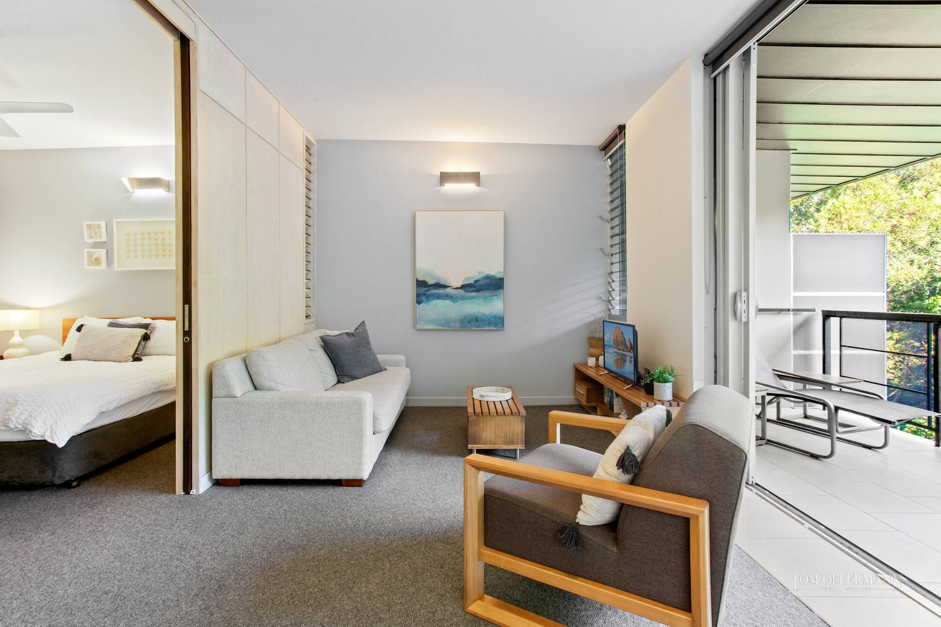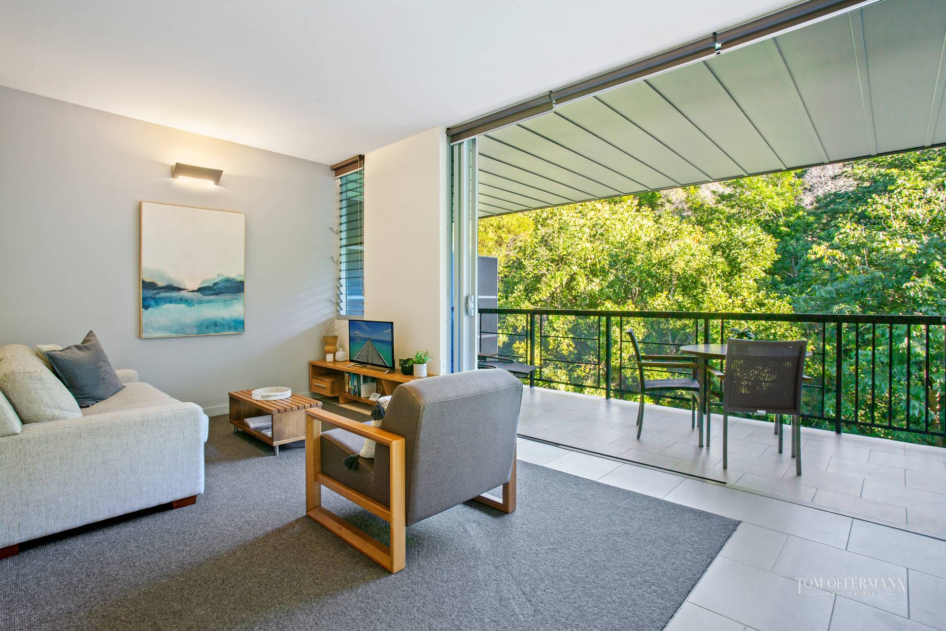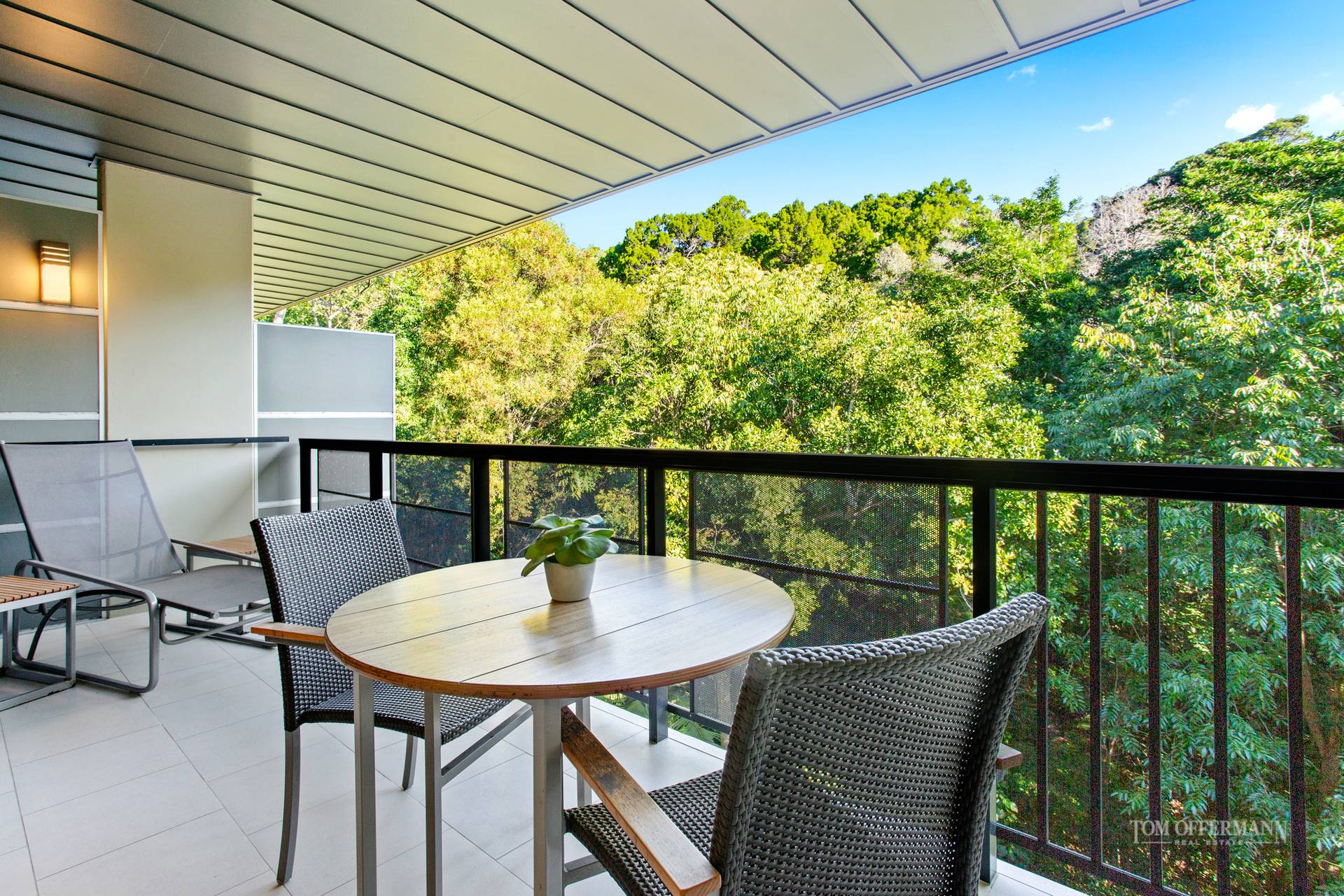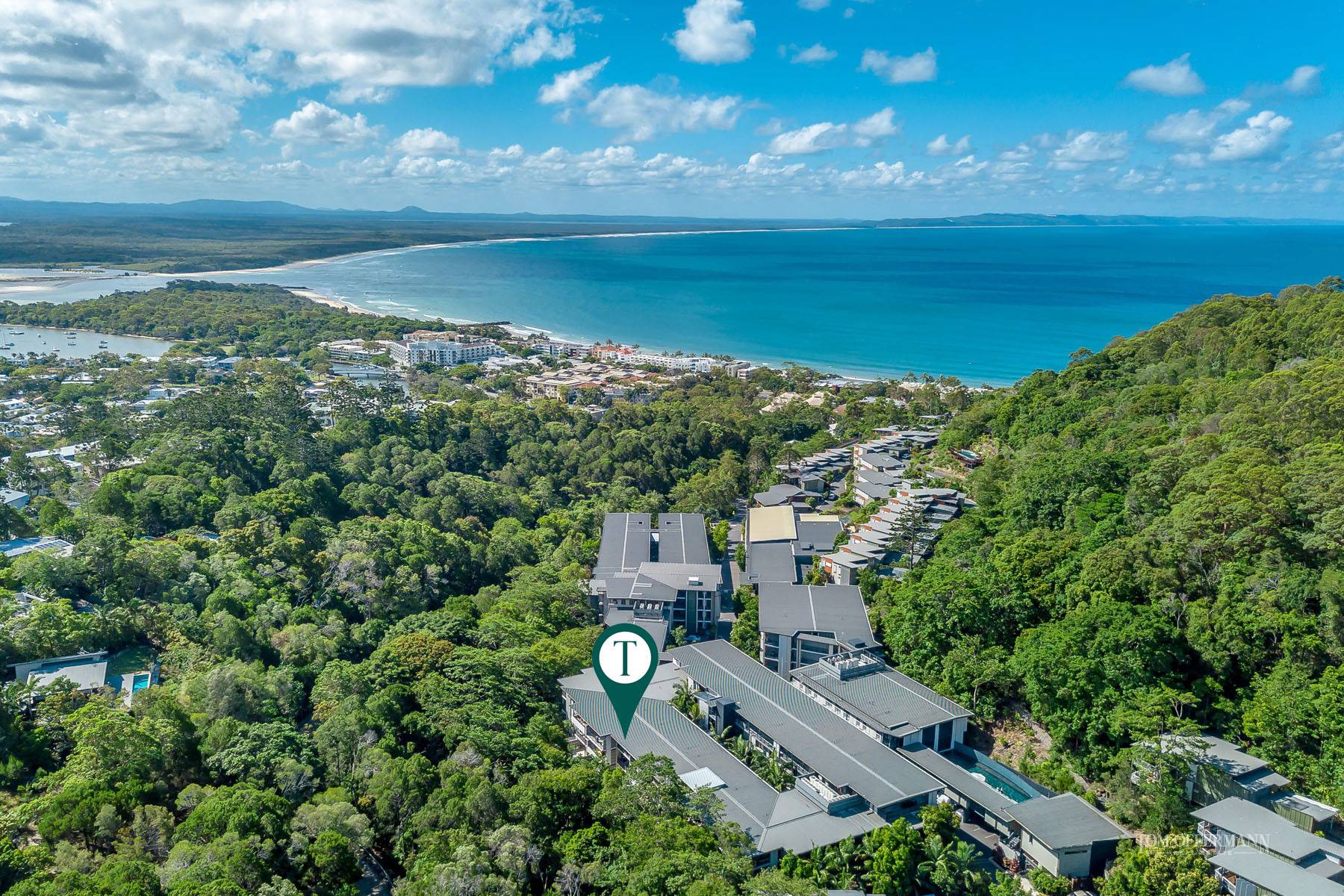 Embracing its position, seemingly perched atop the rainforest trees of the Noosa National Park, where koalas call home and the chorus of native birdlife is a sheer delight, is a one bedroom in-vogue apartment on the much-coveted top floor.